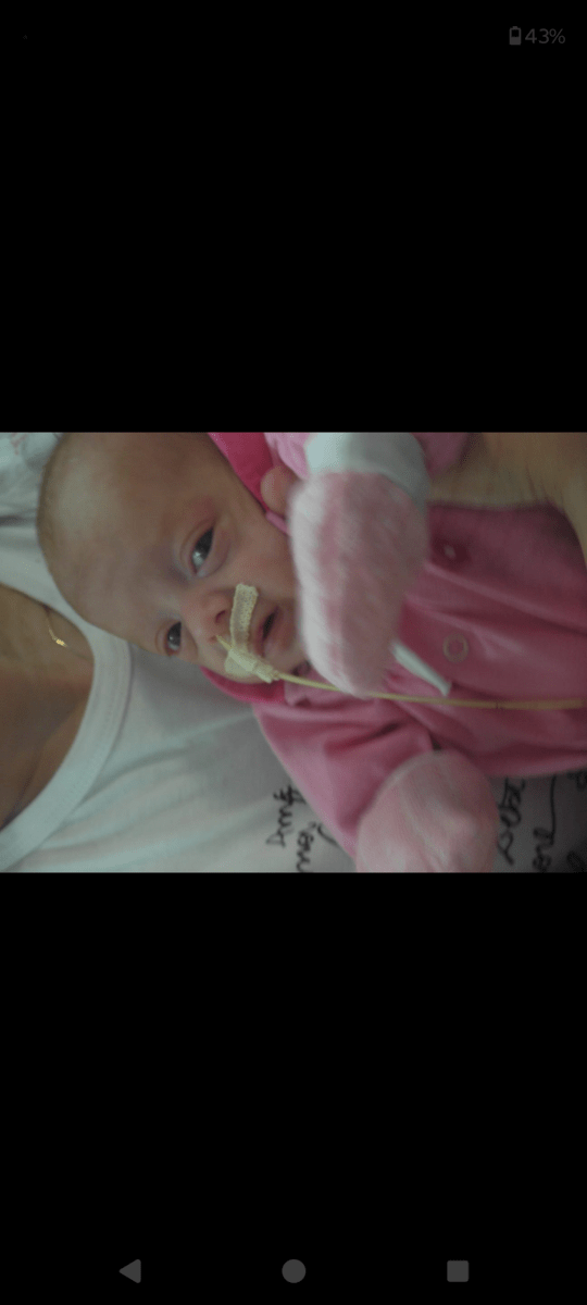 Tive duas gestações, a primeira da Alice, uma gestação a princípio que estava tudo indo bem e normal, quando em um ultrassom foi constatado que ela parou de ganhar peso e minha pressão já estava em 18x10, fui internada as pressas para acompanhamento porém no dia seguinte a melhor opção foi o parto, devido ao quadro de eclâmpsia já grave, e ela veio ao mundo com apenas 500g de peso e 30cm de comprimento, ficando 70 dias na UTINEO, e para surpresa de todos, pois suas chances eram poucas, com 15 dias de nascida conseguiu respirar sozinha e ficando assim até a alta. Esse ano completará 15 anos de saúde, nenhuma sequela de prematuridade.