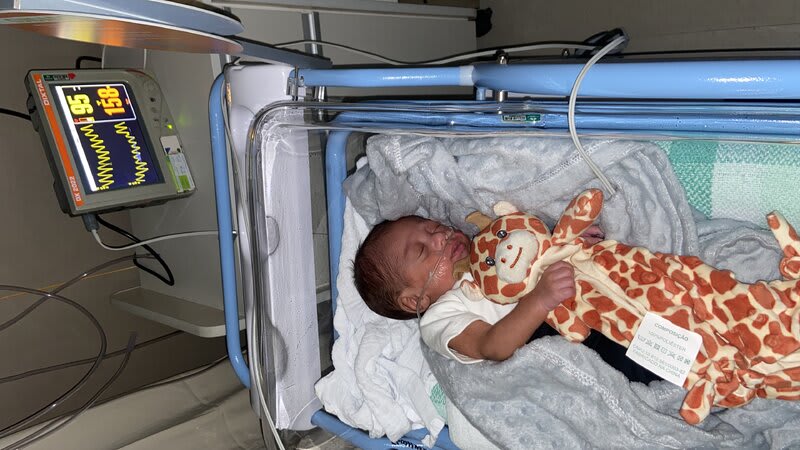 O Cristiano é um guerreiro desde o início da sua vida. Minha bolsa rompeu com 24 semanas, e ali começou a luta dele pela vida. Mesmo tão pequeno, sem líquido nenhum praticamente, foi forte e suportou até 27 semanas e 4 dias. E ali começou mais uma etapa da jornada de forças do meu filho. No primeiro dia de vida, teve uma parada cardiorrespiratória devido a um pneumotórax, que precisou de drenos bilaterais para resolver. Foi entubado, ficou em ventilação invasiva e não invasiva, teve hemorragia cerebral grau 1, anemia, e assim foram 66 dias de UTI. Completamos 71 dias de internação, da corrida pela vida. Confiança e fé numa equipe maravilhosa, que cuidou super bem do meu filho, e no Senhor Jesus, que nos manteve firmes.