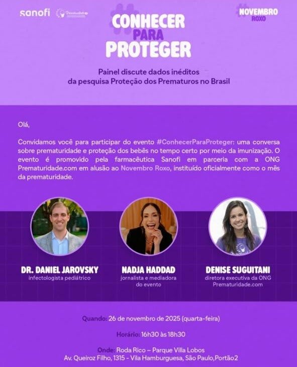 No dia 26 de novembro de 2025, a Roda Rico, em São Paulo, recebeu um evento especial dedicado à conscientização sobre a importância da vacinação de bebês prematuros. A atividade "Conhecer para Proteger" contou com a presença de Nadja Haddad, apresentadora e mãe de gêmeos prematuros, e Adriana Rampazio, mãe de gêmeos prematuros extremos e coordenadora de voluntariado da ONG Prematuridade.com. Também participaram Guillaume Pierart, diretor geral de vacinas da Sanofi, Dr. Daniel Jarovski, pediatra infectologista, e Denise Suguitani, diretora da ONG Prematuridade.com.