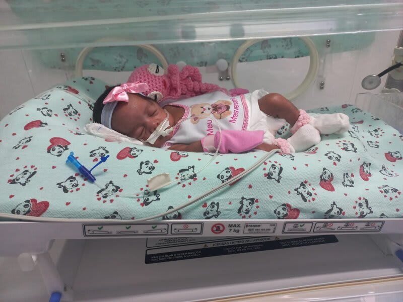 Foram dias muito difíceis: 30 dias de UTI neonatal e mais 27 dias de berçário, até finalmente recebermos a tão sonhada alta. Dois meses depois, porém, voltamos para a UTI novamente devido a uma bronquiolite associada à anemia, necessitando de nova transfusão de sangue e mais dias de CPAP.