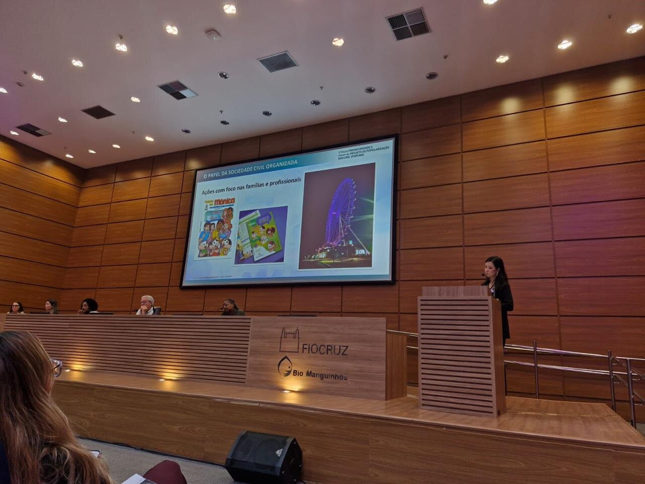 A Denise Suguitani, diretora da ONG Prematuridade.com, participou do evento trazendo a perspectiva da sociedade civil organizada, destacando o papel das famílias, das organizações sociais e do advocacy na promoção da equidade na imunização dos prematuros. Em sua fala, apresentou as principais ações que a ONG vem desenvolvendo atualmente, incluindo iniciativas de informação, mobilização social, qualificação de profissionais e diálogo com gestores e formuladores de políticas públicas.