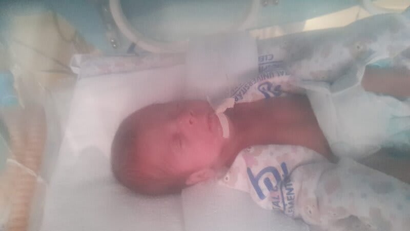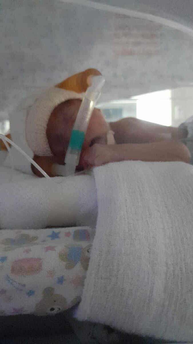 Foi para a UTI neonatal, com diagnóstico de hemorragia cerebral grau 2, anemia severa, a qual recebeu 5 transfusões sanguíneas, rins e pulmão quase sem funcionamento, sepse neonatal, hipotermia e hiperglicemia, doença metabólica dos ossos, refluxo, icterícia, micro-hemorragia e microaneurisma ocular.