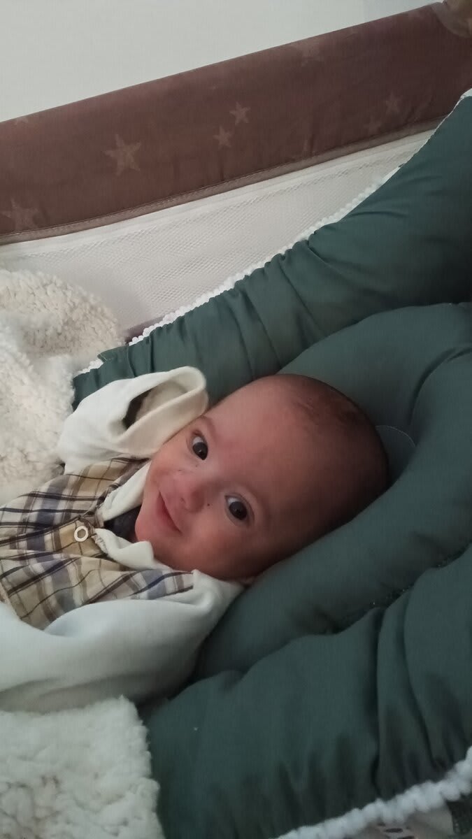 Meu filho se chama Nathan. Nasceu de 29+5, pesando apenas 730g, com 34 cm. Ficou 2 meses entubado, 3 semanas no CPAP. Teve diversas intercorrências, entre elas: sangramento no pulmão, na cabeça, precisou fazer uma cirurgia para desobstrução do intestino e, agora, faz uso de bolsa de colostomia (reversível). Ficou internado na UTINeo por 158 dias e, hoje, está com quase 6 meses (faz dia 17), muito esperto, saudável e feliz.