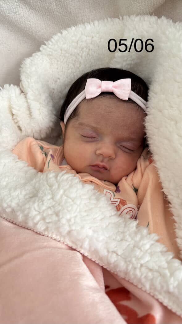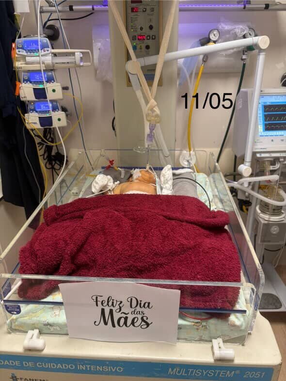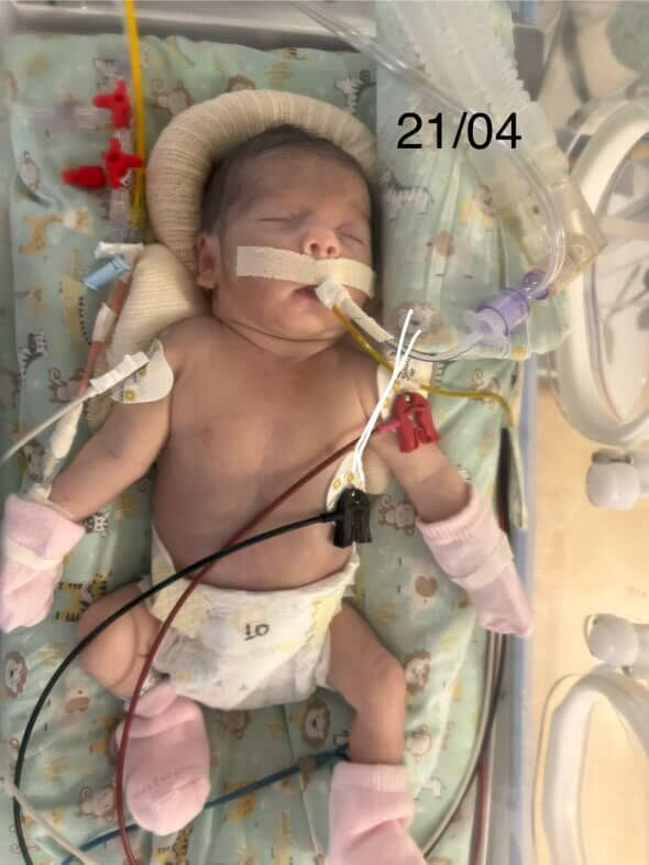 Em 12/04/25, Catarina nasceu às 2:00 da manhã, perfeita, de 32 semanas, com 1890g e 41 cm. Ninguém soube explicar o que aconteceu, o que foi visto, já que temos vídeos do intestino para fora do abdômen, laudos, e foi confirmado por três médicos diferentes.