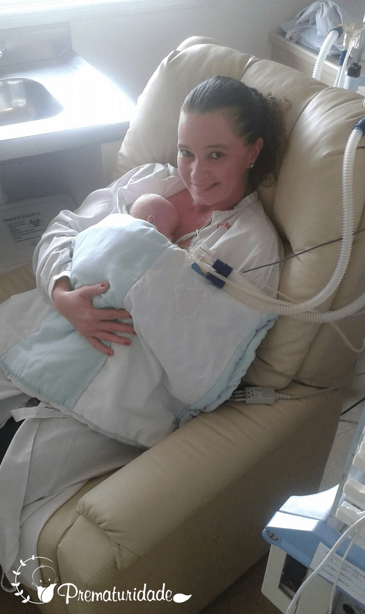 Fui internada imediatamente afim de conseguir segurar o máximo de tempo possível para fortalecer o pulmão dela e ganhar mais algum peso. Mas ambas corríamos risco de vida. Internamos na segunda-feira, dia 19 outubro de 2015. No domingo, dia 25, não havia possibilidade de espera, poderia ser fatal. Fomos enfrentar pela primeira vez uma cesariana com direito a aplicação de sulfato de magnésio. Horrível! Neste dia, nasceu nosso verdadeiro milagre Valentina com 28 semanas, pesando 560 gramas e medindo 29 cm.
