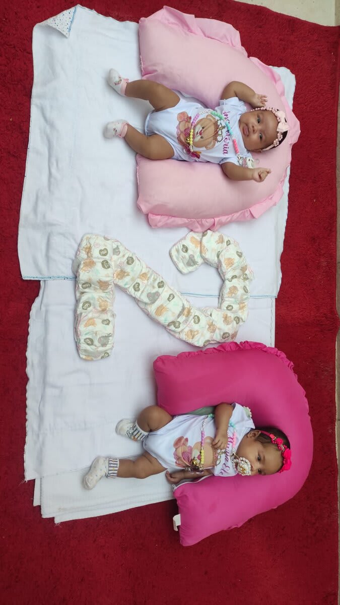 Até que, dia 18-11, fui fazer um ultrassom à tarde na mesma maternidade; estava tudo normal com as duas bebês. A médica do ambulatório pediu para eu passar na emergência. Como havia muitos pacientes, eu fui para casa comer; foi só o tempo de eu encher a barriga e a dor na lombar apertar. Voltei para a maternidade na parte de emergência; não havia ninguém para ser atendida, só eu, e para minha sorte, pois é sempre muito cheio. A essa altura, eu já estava com 8 cm de dilatação. Por volta de 19h, fui internada e, logo em seguida, fui informada que iria para o centro cirúrgico. Liguei para meu esposo e pedi para buscar ele. Ele chegou, fui para a sala de cirurgia e pedia a Deus que desse tudo certo. Levei as primeiras agulhadas de anestesia para entrar a anestesia raqui. A primeira sem sucesso, falhou; ainda sentia minhas pernas. Mais agulhadas, outra raqui, novamente não pegou. Decidiram me entubar e dar anestesia geral. Não iria escutar o primeiro choro das nenéns, mas elas iriam nascer, e nasceram lindas, totalmente saudáveis. Foram para a UTI só por causa da prematuridade mesmo.