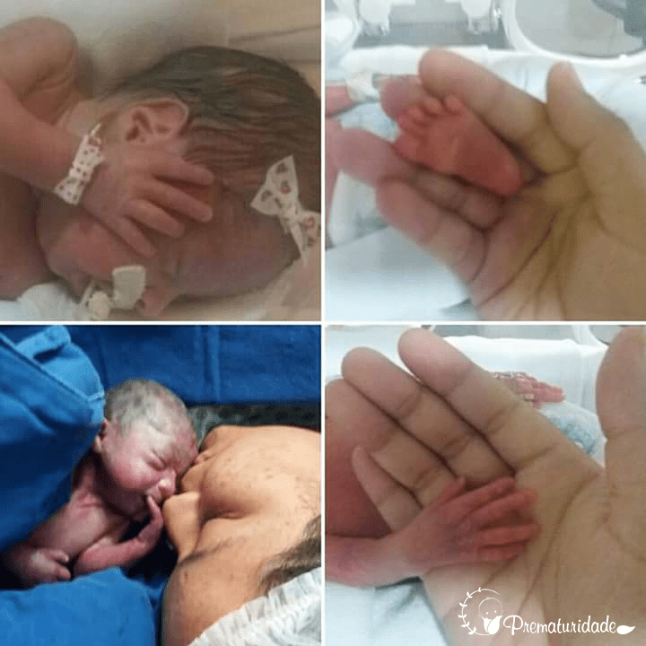 "Tudo começou dia 05/08, quando liguei pro meu médico dizendo que tava sentindo umas dores no pé da barriga e ele pediu para ir até hospital. Quando cheguei e fui examinada, estava com 3cm de dilatação. Fiquei internada 5 dias tomando remédio para segurar, pois estava de 25 semanas. No dia 10, recebi alta, fui pra casa e fiquei de repouso absoluto. Porém, no dia 12, ao ir no banheiro, constatei que havia sangremento. Eu já estava de 26 semanas e 6 dias, então corremos para o hospital.