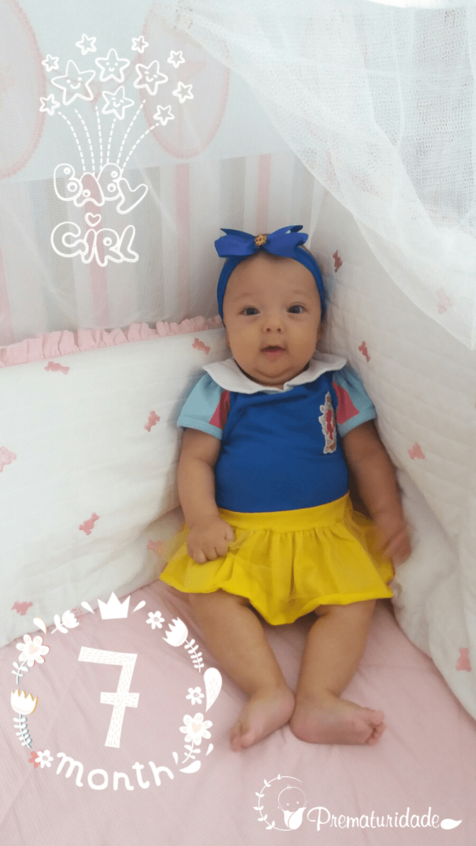 No dia 11/10, ela recebeu alta da UTI Neo e fomos para o quarto. No dia 17, estava com a minha guerreira, a minha princesa, nos braços, em casa! Foi cansativo, pois não tive dieta, mas valeu a pena. Hoje, 30/03/17, ela está com 7 meses (4 meses idade corrigida), forte e esperta. Todo dia agradeço a Deus pela vida dela. #maedeprematuro"