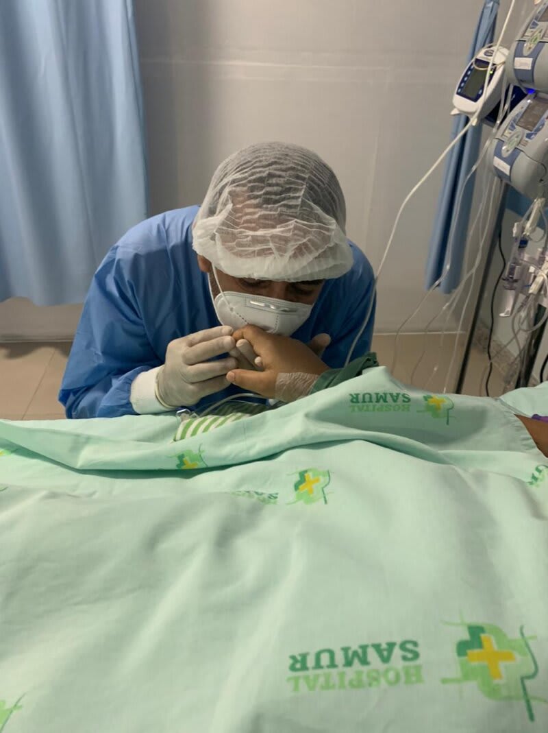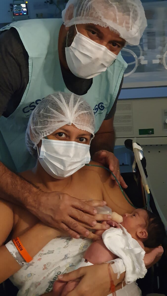 Eu não a vi, ela nasceu desacordada, precisando de intubação imediata. A partir daí travamos uma batalha, ela na uti neonatal e eu na uti covid, enquanto ela melhorava a cada dia, o meu quadro ficava pior… Ela foi extubada no segundo dia e eu apenas 10 dias depois após 3 tentativas…