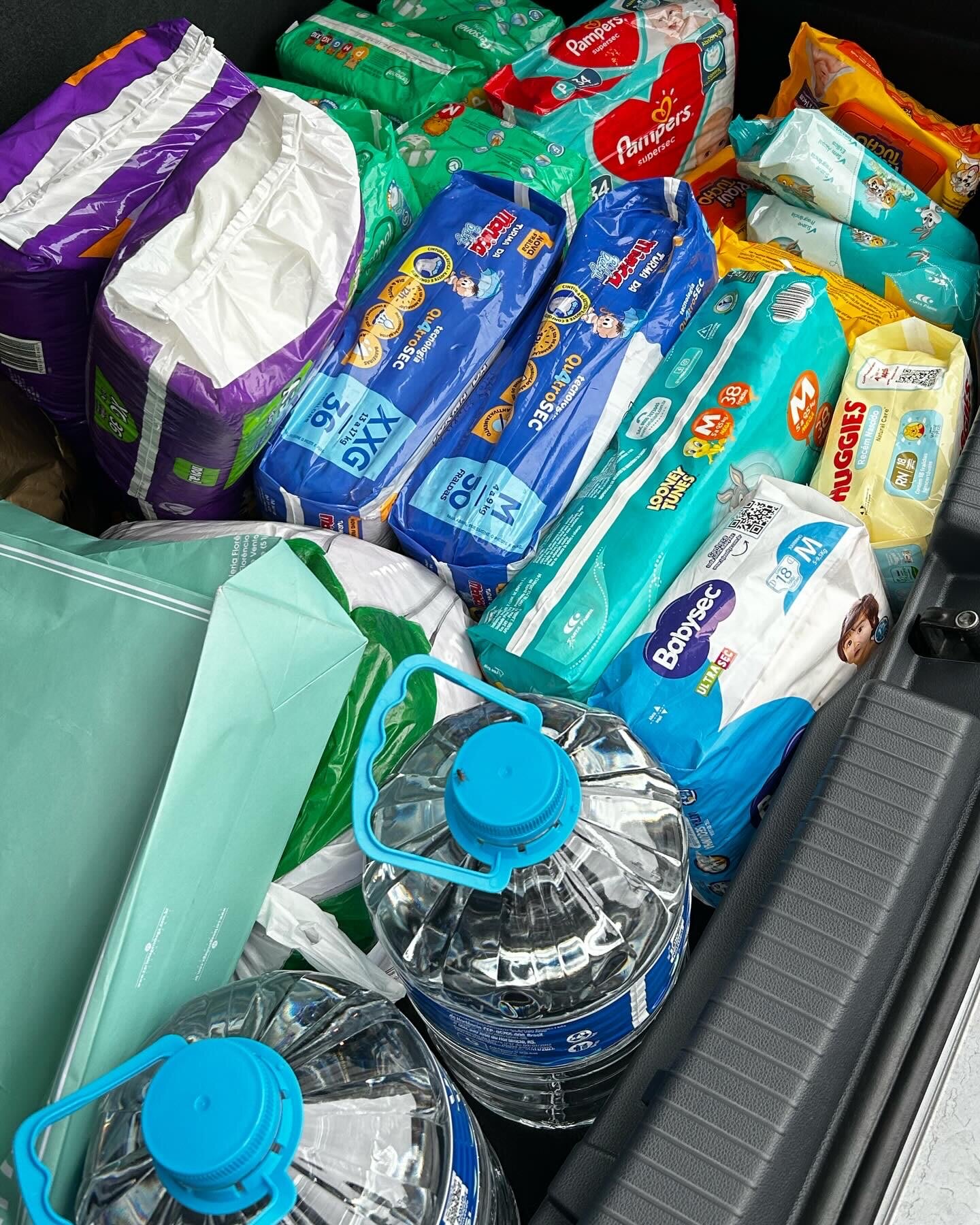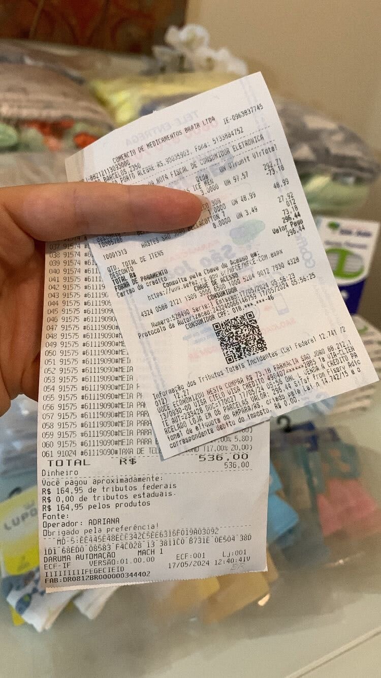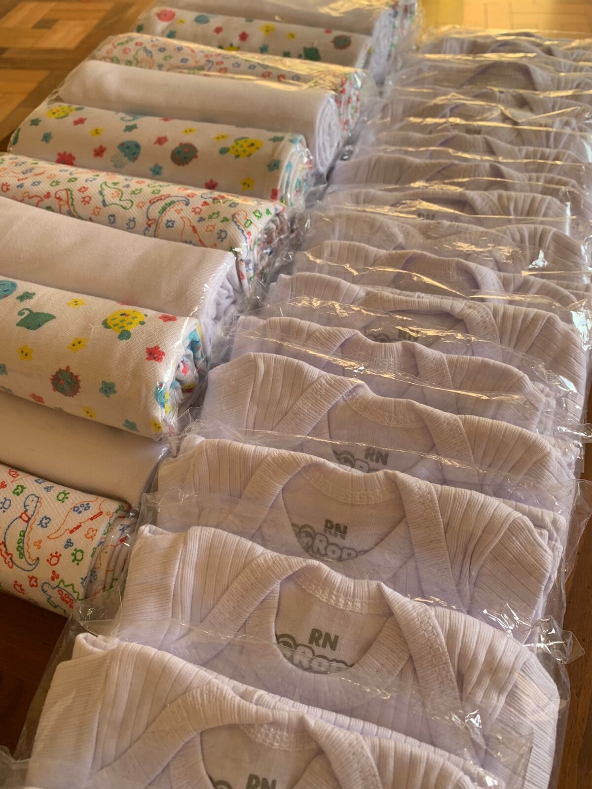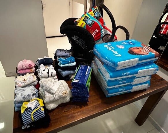 Com os valores arrecadados, compramos itens como água mineral, fraldas, lenços umedecidos, sabonete líquido, bebê conforto, mantinhas, cueiros, cobertores, kits de touca, meias e luvinha e roupinhas de bebês em geral. As doações foram destinadas para famílias de bebês prematuros internados em UTI Neonatal e famílias de profissionais da UTI, enfermeiros e técnicos de enfermagem, que perderam tudo nas enchentes.