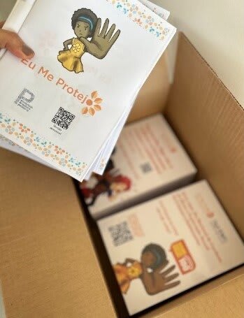 Foi lindo de ver também a parceria que nasceu entre ONG Prematuridade.com e o coletivo Eu Me Protejo. O Eu Me Protejo promove educação para prevenção contra a violência na infância e adolescência. Juntos, fizemos a impressão e distribuímos cartazes e cartilhas nos abrigos de Porto Alegre. Isso tudo graças ao apoio e parceria da Patricia Almeida, da Ana Luiza Vieira e da Gráfica Viva Comunicação Digital. Um trabalho importante, já que ocorrências de violência sexual começaram a acontecer dentro dos abrigos. Felizmente, aos poucos, as prefeituras e a Defesa Civil conseguiram criar espaços separados e mais protegidos para mulheres e crianças.