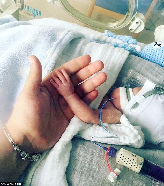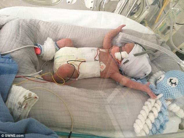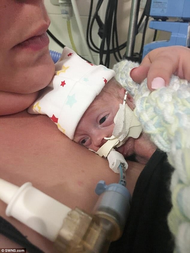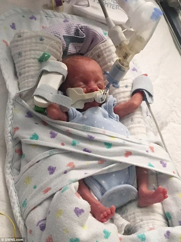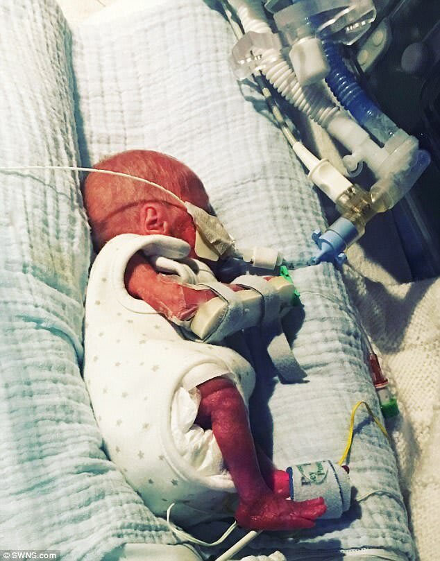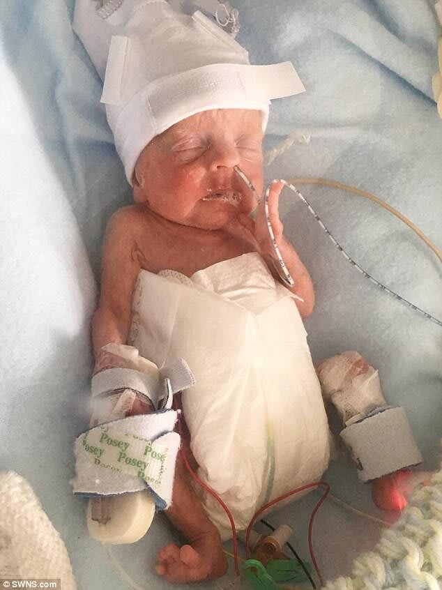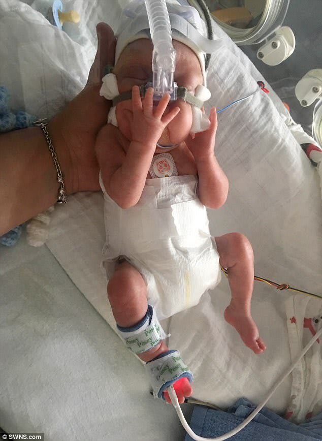 Nascido com apenas 22 semanas, Austin Douglas é um dos bebês mais prematuros registrados na Grã-Bretanha. Ele nasceu em 31 de março, 18 semanas antes da hora, e desde então vem desafiando o prognóstico dos médicos, que diziam que ele tinha poucas chances de sobreviver, segundo informa o jornal inglês Daily Mail. Após mais de 2 meses de cuidados intensivos em um hospital em Birmingham, na Inglaterra, o bebê está se recuperando bem e deve receber alta no próximo mês. A mãe do pequeno garotinho se chama Helen e seu marido se chama Rhys.