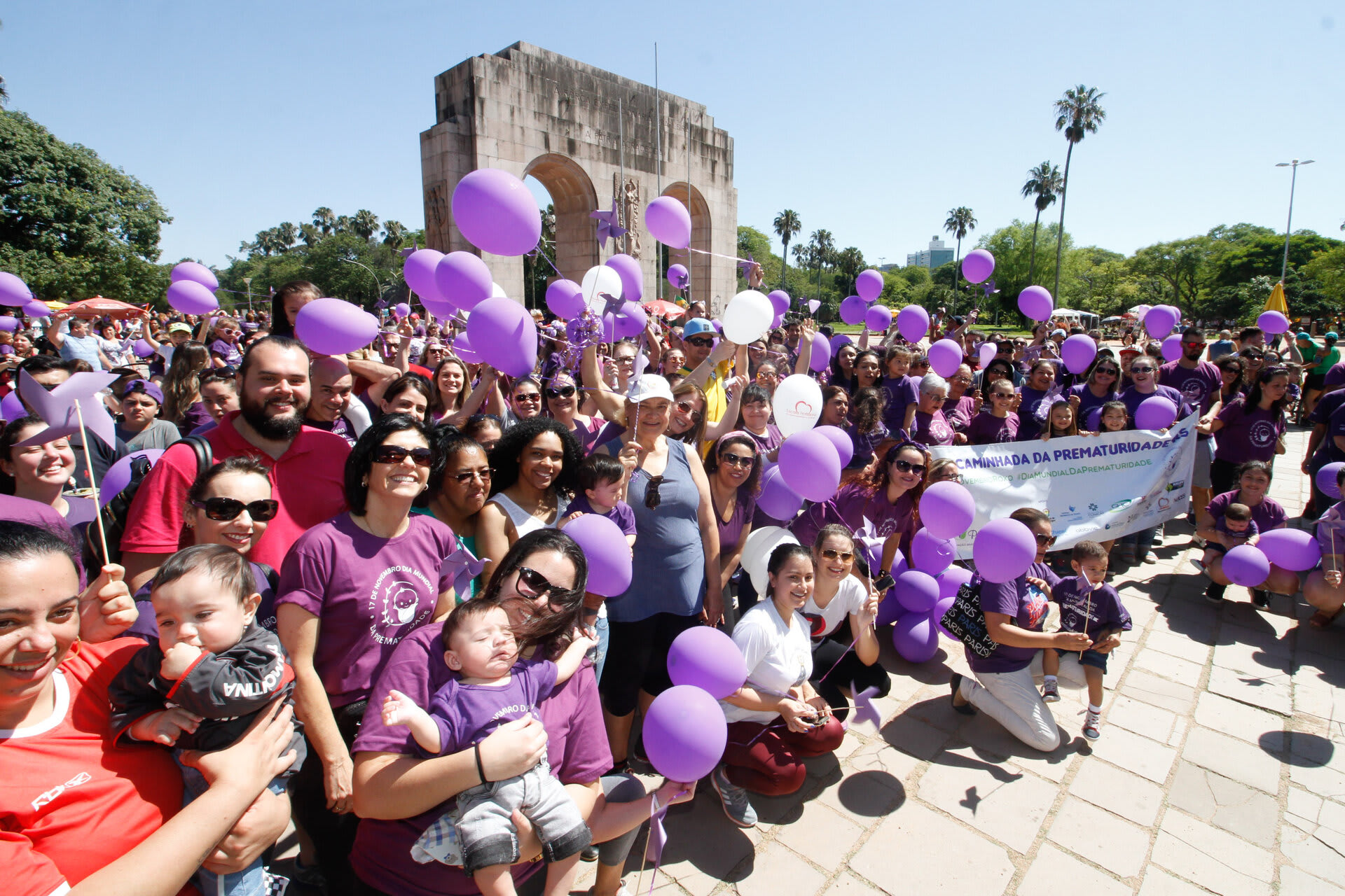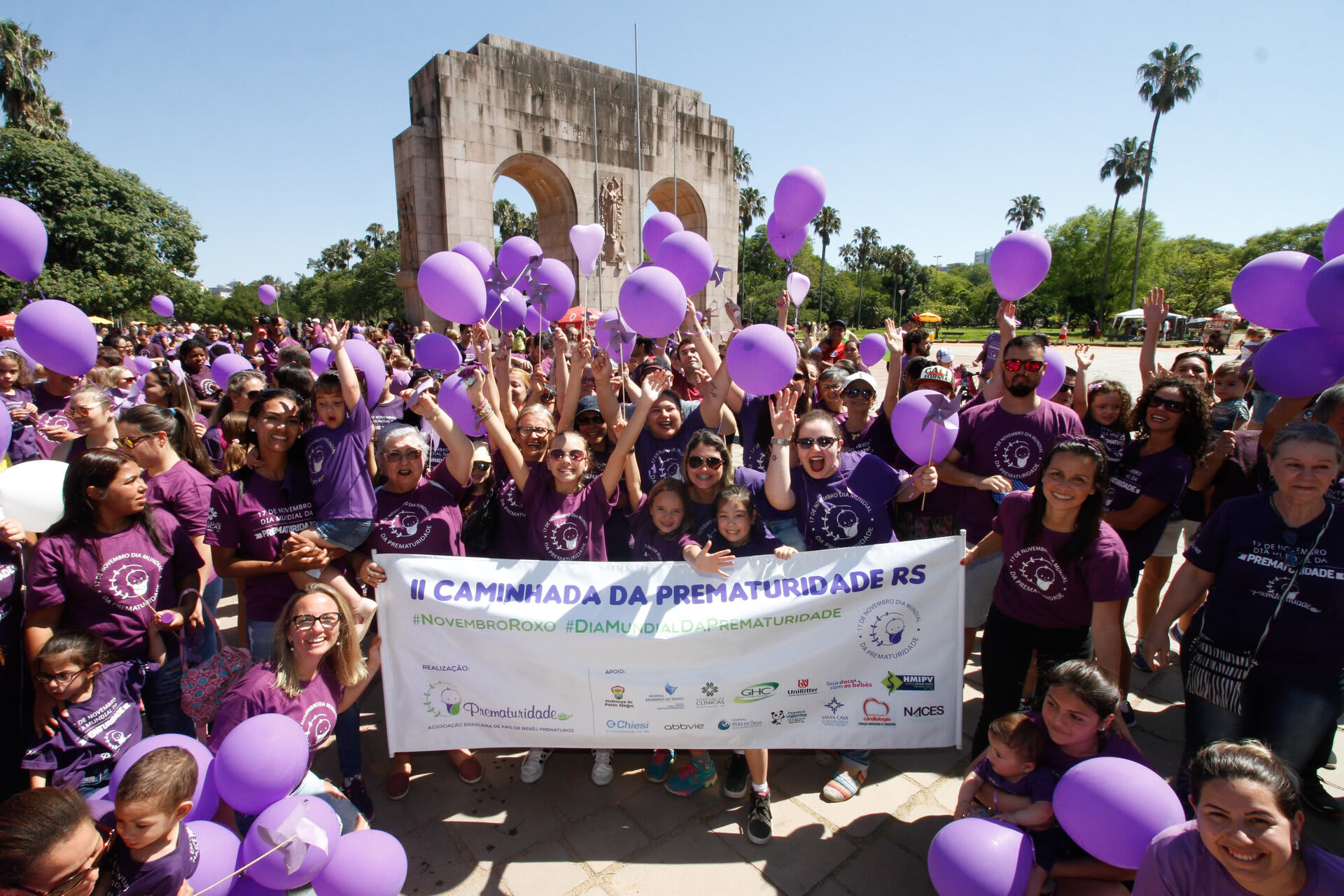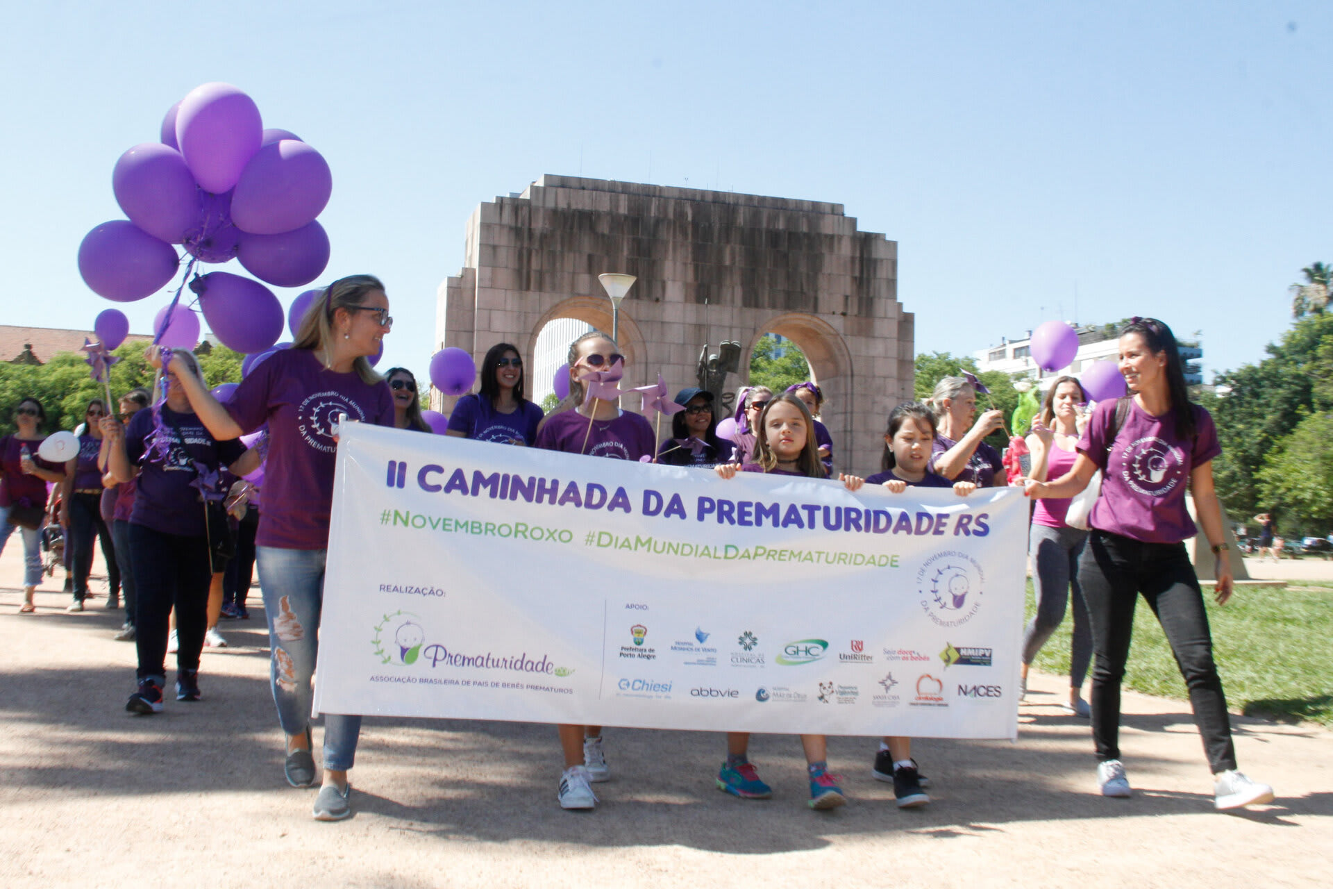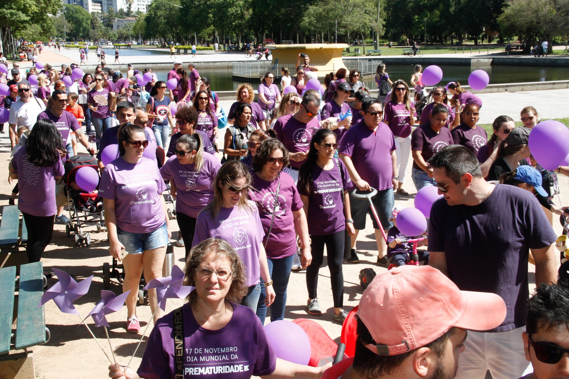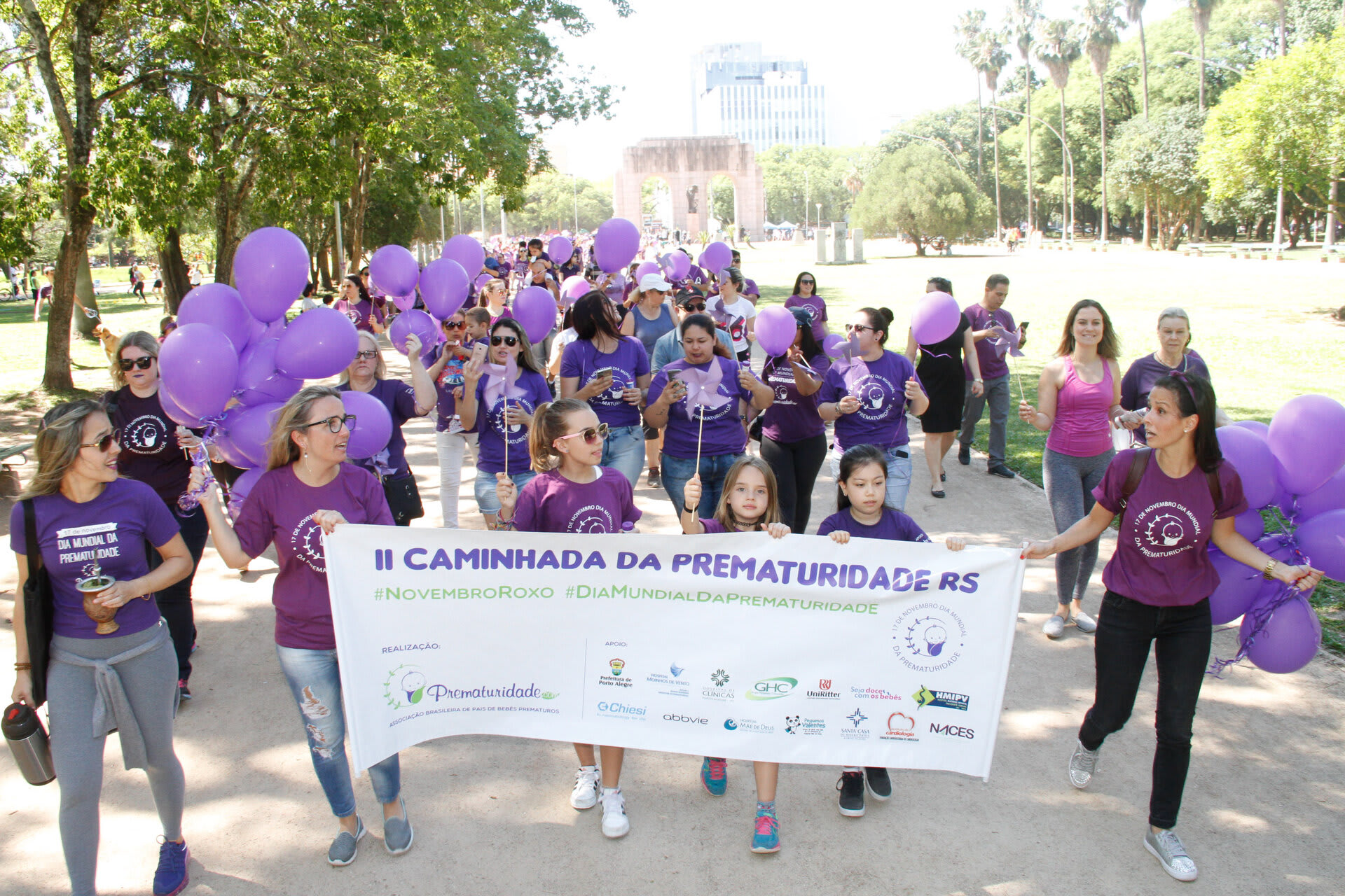 Com o objetivo de chamar a atenção e sensibilizar a sociedade sobre a importância dos cuidados com o prematuro, a Associação Brasileira de Pais, Familiares, Amigos e Cuidadores de Bebês Prematuros (ONG Prematuridade.com) reuniu, nesta quarta-feira, dia 15, pais, familiares e amigos de bebês prematuros, crianças, profissionais da saúde no Parque da Redenção, em Porto Alegre (RS). Na ocasião, centenas de pessoas vestidas de roxo (cor que simboliza a causa da prematuridade), com balões e cataventos roxos, participaram da II Caminhada da Prematuridade RS realizada dentro do parque.