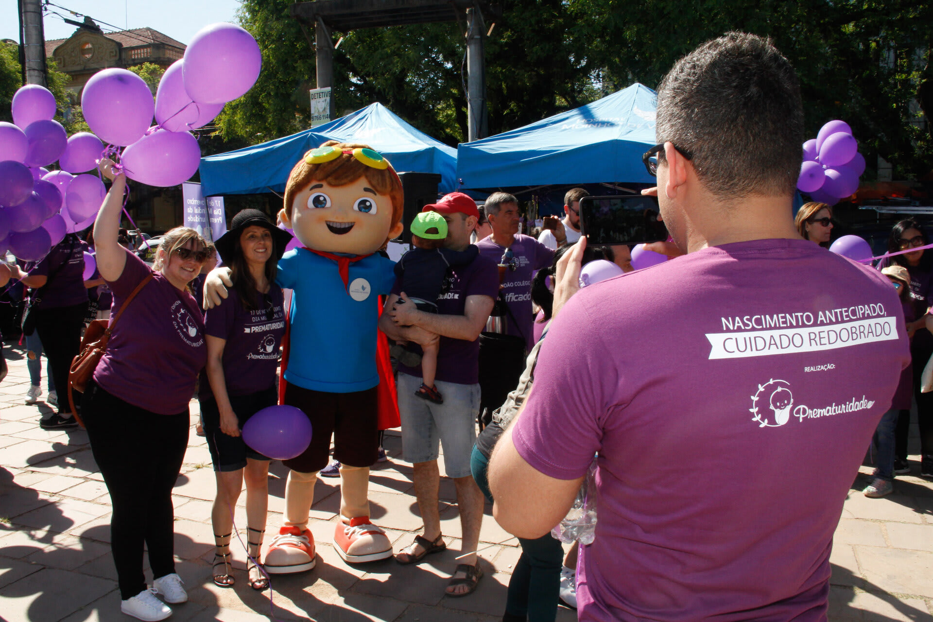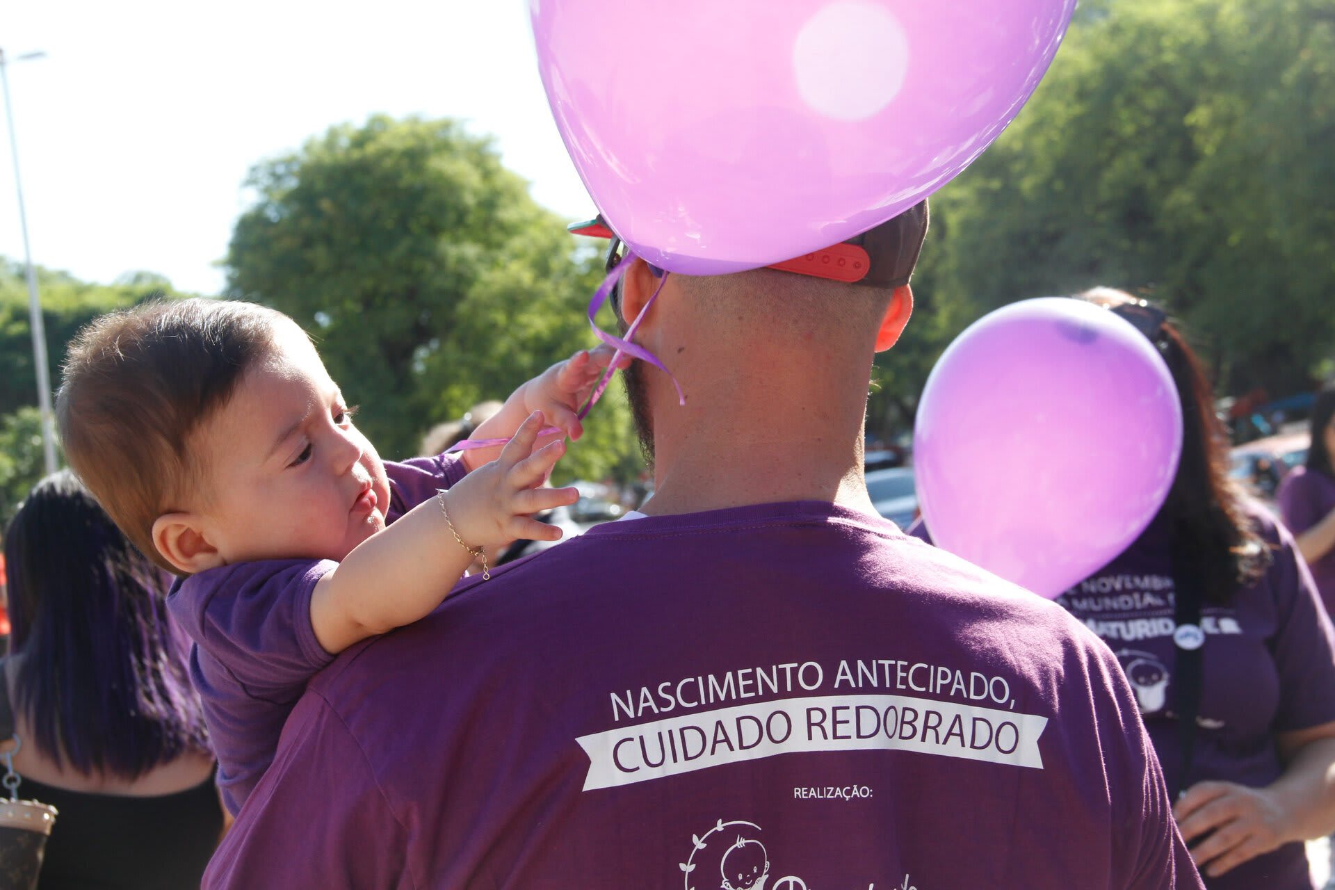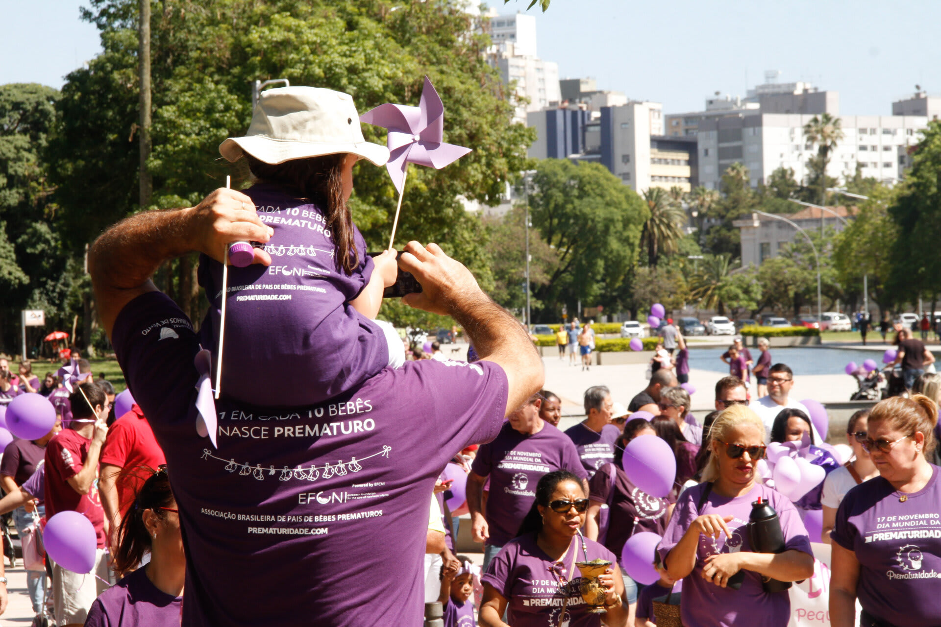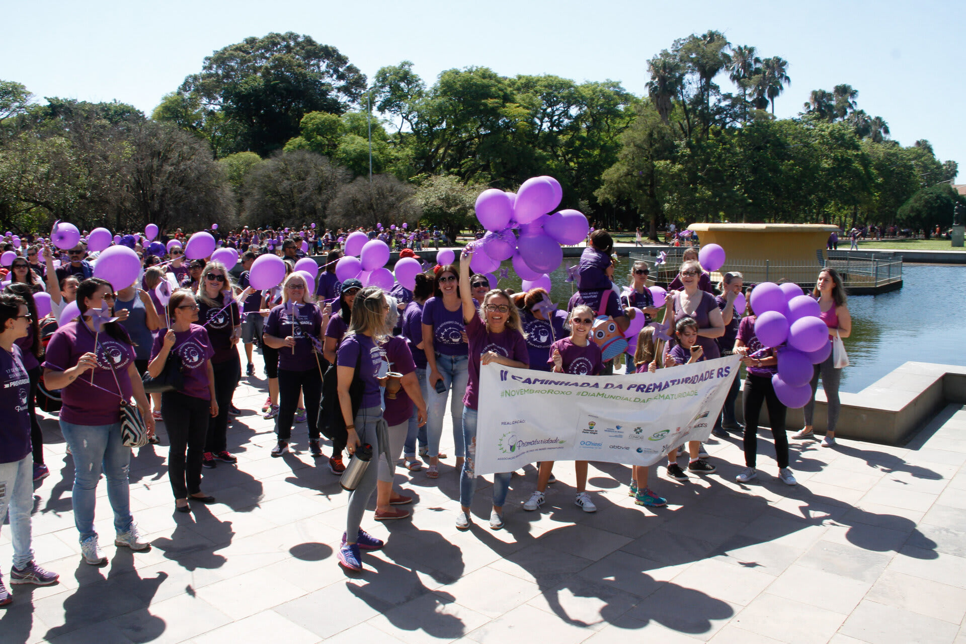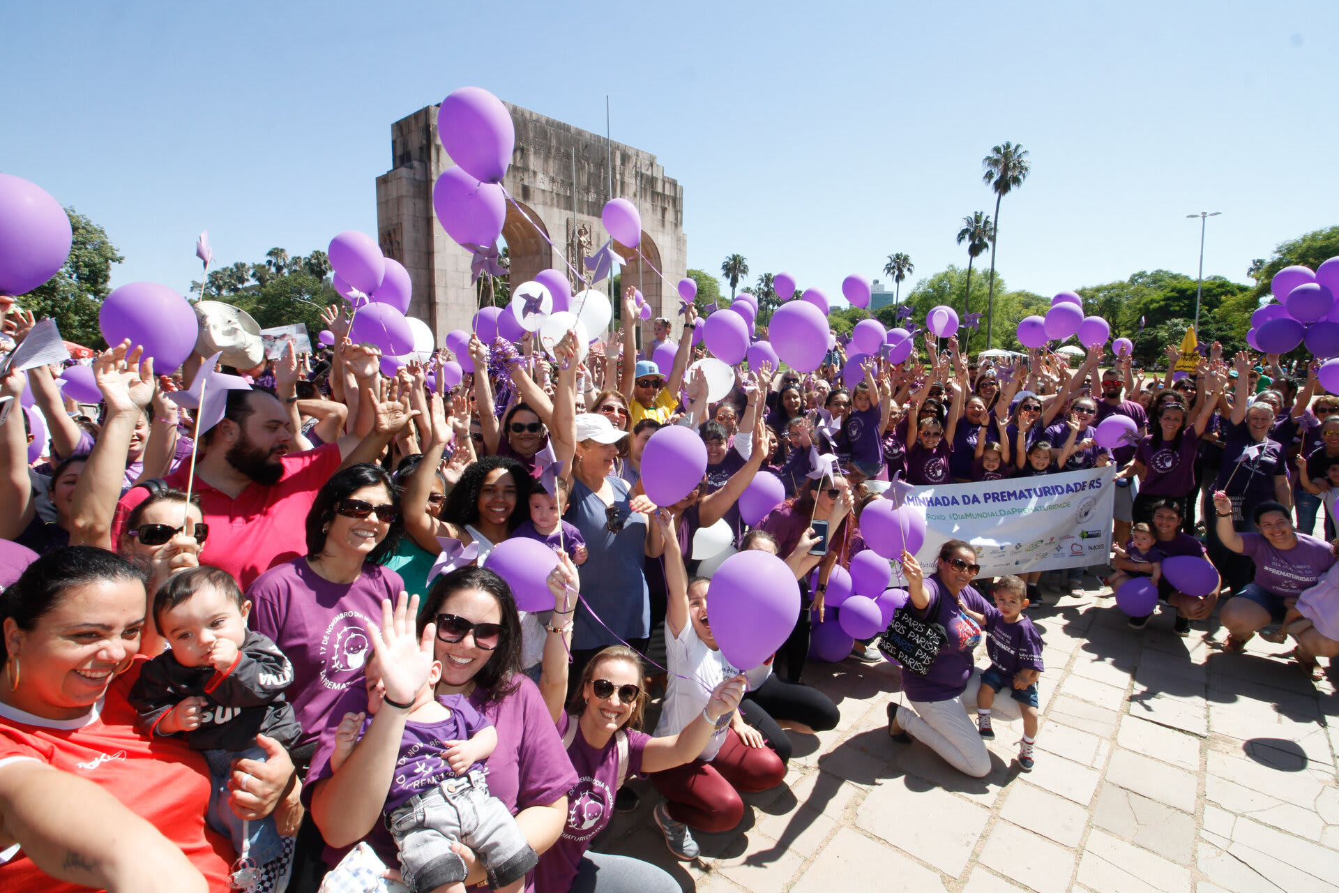 Com o objetivo de chamar a atenção e sensibilizar a sociedade sobre a importância dos cuidados com o prematuro, a Associação Brasileira de Pais, Familiares, Amigos e Cuidadores de Bebês Prematuros (ONG Prematuridade.com) reuniu, nesta quarta-feira, dia 15, pais, familiares e amigos de bebês prematuros, crianças, profissionais da saúde no Parque da Redenção, em Porto Alegre (RS). Na ocasião, centenas de pessoas vestidas de roxo (cor que simboliza a causa da prematuridade), com balões e cataventos roxos, participaram da II Caminhada da Prematuridade RS realizada dentro do parque.