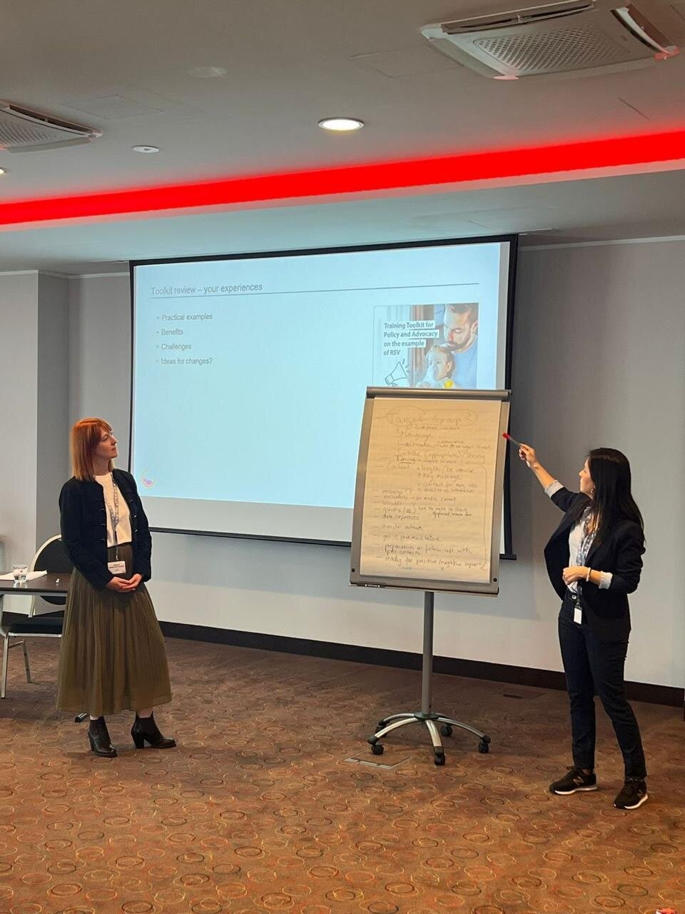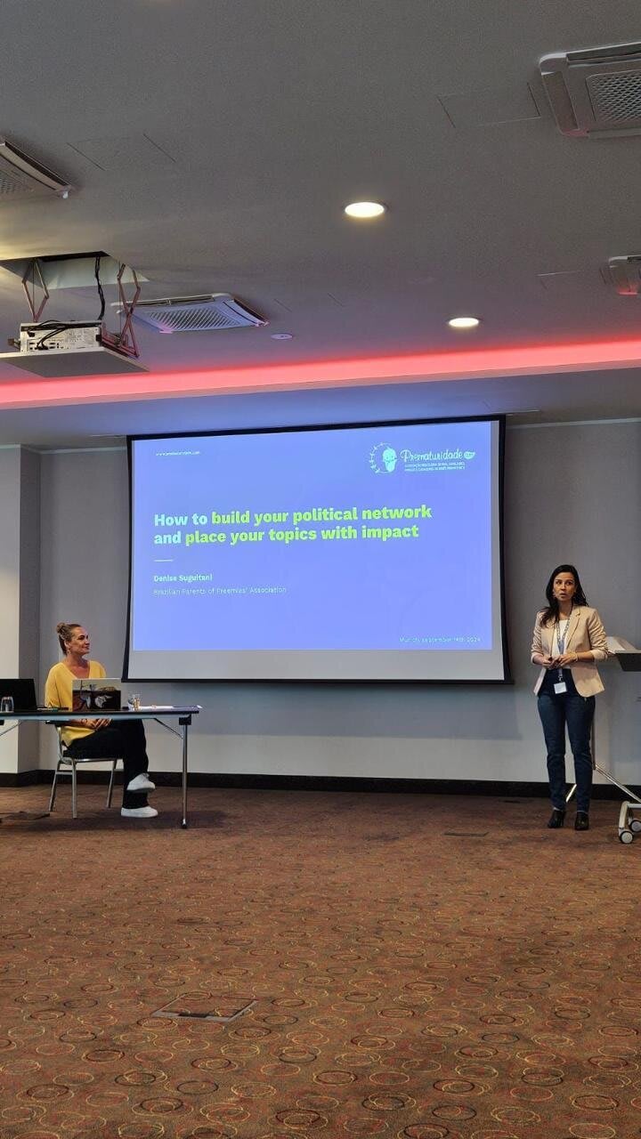 Denise ministrou a aula ao lado de Asta Radzeviciene, presidente da ONG Neisnesiotukas, associação de pais de prematuros da Lituânia.