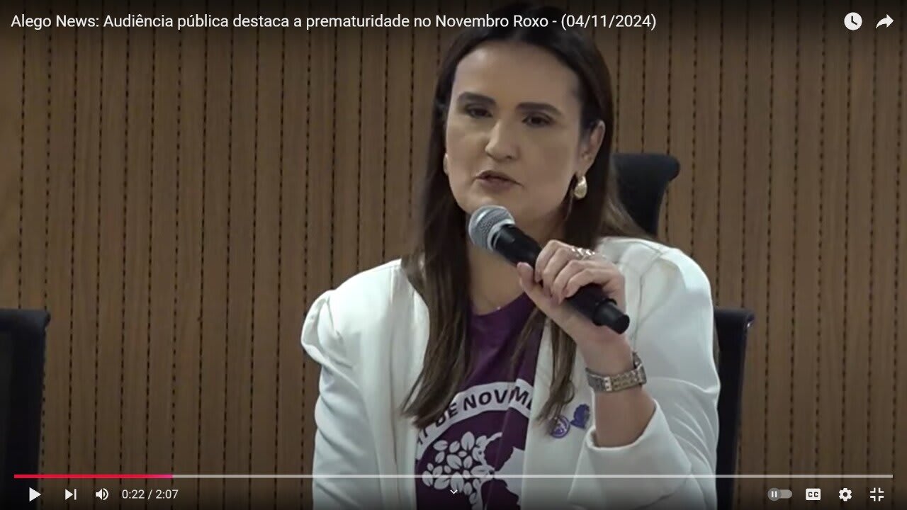 Na tarde da segunda-feira, dia 4 de novembro, o mandato do deputado Mauro Rubem promoveu uma audiência pública na Assembleia Legislativa de Goiás para discutir a prematuridade, em alusão ao Novembro Roxo, mês internacional de conscientização sobre o tema. Durante a abertura, Mauro destacou a importância de dar visibilidade ao assunto e reforçou seu compromisso com a saúde, uma de suas principais bandeiras.