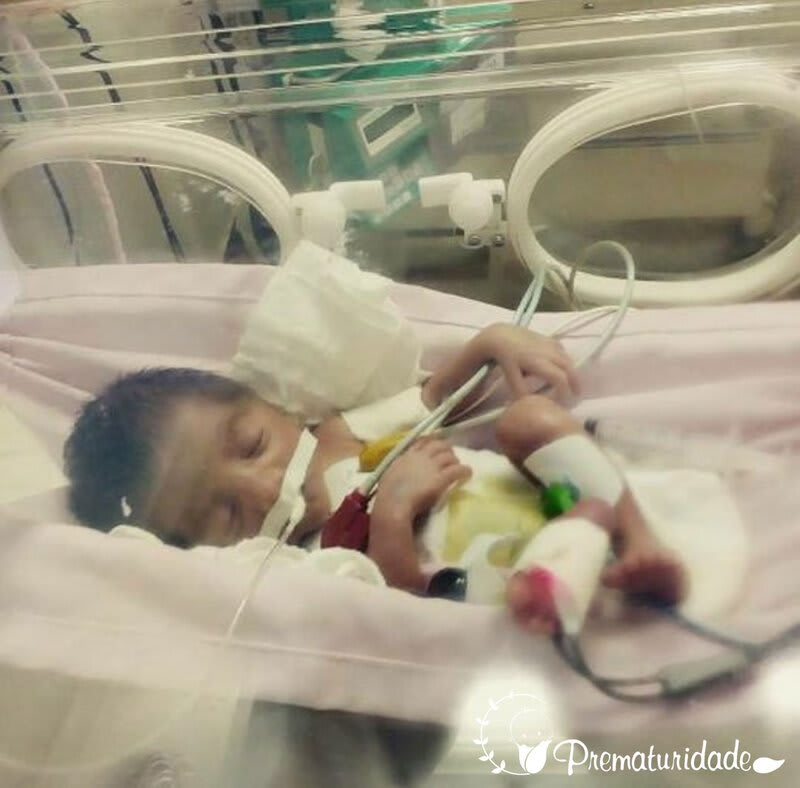 Entrei no centro cirúrgico às 15h da quinta, dia 29/12, e o meu parto foi realizado às 18:05, cesariana de risco. Eu tive oligodramnia severa (perda total de líquido amniótico), mas a vitória foi dada por Deus, e a minha filha chorou ao nascer. Pesando 1,70kg, foi levada às pressas para a UTI, e eu nem pude vê-la. Como prova do amor de Deus por nós, ela estava firme, respirando sozinha (um milagre). Só depois de 3 horas após o nascimento precisou fazer uso de CPAP. Foram 27 dias na UTI, sem intercorrências, sem uso de aparelhos ou medicações, estava ali apenas para ganho de peso, e observação, pois a prematuridade foi extrema.