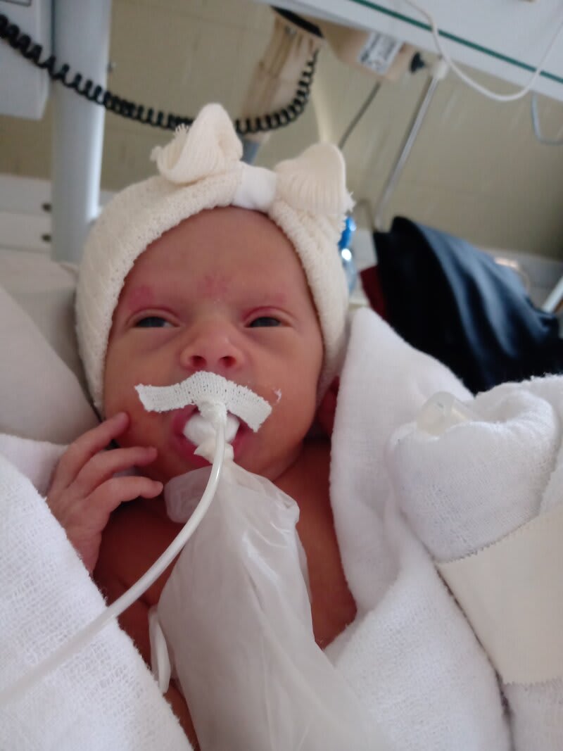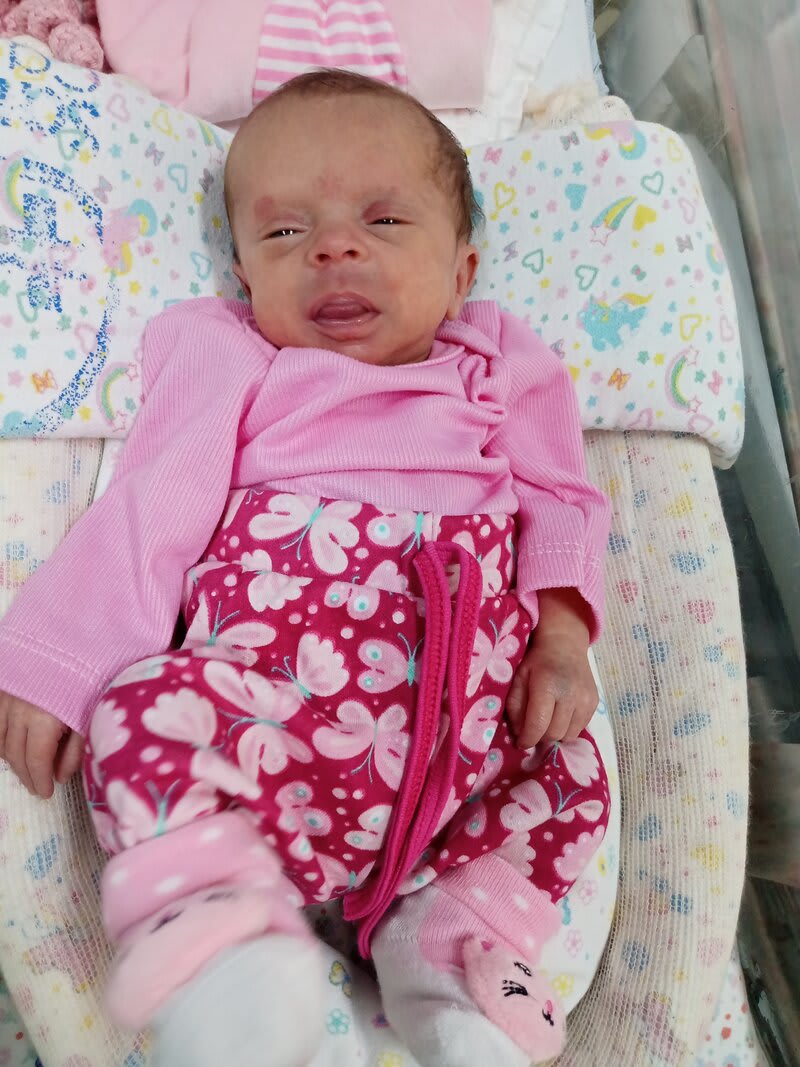 Bia nasceu com 32 semanas, tive uma pré-eclâmpsia e tentaram estabilizar minha pressão por 24h mas não foi possível, então dia 18/07/23 às 15:21 Bia veio ao mundo quando era prevista para 10/09/23. Foi tudo tão rápido, um misto de medo, dor e muita felicidade, a vi em um breve momento no centro cirúrgico e ela rapidamente foi levada para UTI neo. Tive tanto medo, foram 8 longos dias e minha princesa nasceu com 44 centímetros e 1.760 kg. Passados esses dias ela foi transferida para o berçário e posteriormente para o quarto internada junto comigo em uma grande luta para ganho de peso e desmame do O2 mas felizmente no dia 17/08 às 10h recebemos alta. Serei eternamente grata àqueles profissionais que me apoiaram em todo o processo, hoje a bia tem 41 dias 51 centímetros e 4 kg, minha pequena guerreira venceu e vem vencendo cada dia mais.