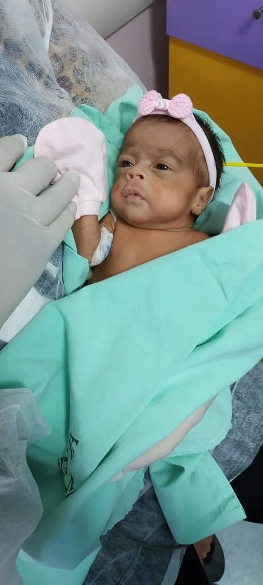 E daí em diante, começou uma grande batalha, por volta de 1 mês e 16 dias na UTI contraiu uma infecção chamada enterocolite, que precisou ficar entubada por 16 dias, assim como teve uma parada respiratória, várias apneias, e precisou ficar no NPP . Com certeza foram os dias mais difíceis da minha vida, mas pela graça de Deus a minha princesa foi curada da infecção e começou a ganhar peso.