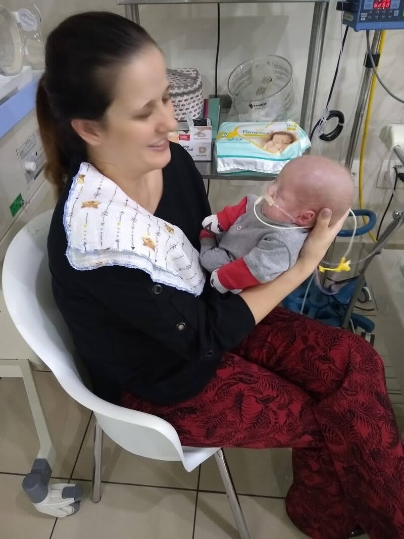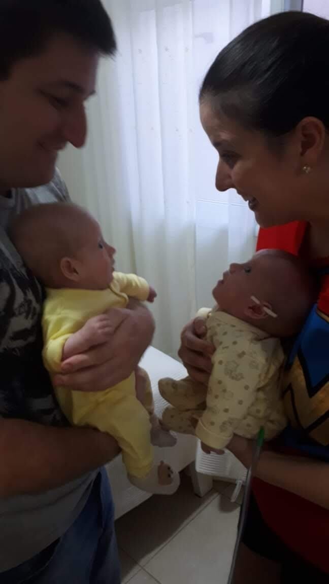 As primeiras semanas foram muito difíceis, pois eles eram muito frágeis e passaram por diversos desafios. Toda a nossa família estava tentando entender a situação, além disso, eu estava me recuperando da cirurgia, vivendo o puerpério e ainda tentando produzir algum ml de leite materno.