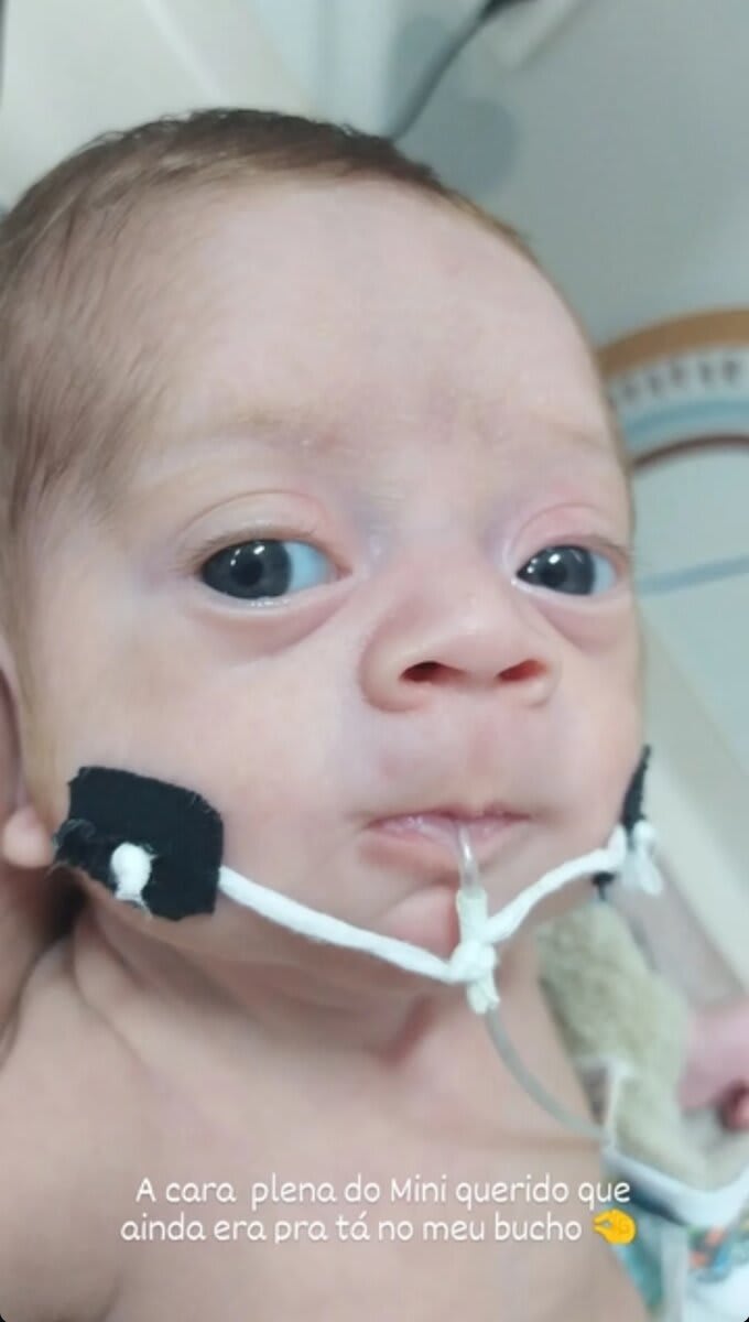 No dia 24 de dezembro de 2024, minha placenta descolou novamente e Heitor Valentim entrou em sofrimento fetal, precisando ser retirado e levado à UTI entubado. Foram muitos desafios, mas eu sempre confiante de que ele ia conseguir sobreviver, pois mantive minha fé firme. Foram 113 dias de luta, quase 4 meses, e hoje, pela glória do Senhor, estamos em casa.