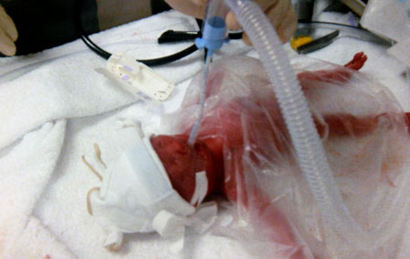 "Os médicos salvaram um bebê prematuro colocando-o em um saco plástico utilizado para embalar sanduíches na cantina do hospital. Eles calcularam que o recipiente de plástico de aproximadamente 15cm seria ideal para manter aquecida a pequena Lexi Lacey, que nascera de 26 semanas, pesando apenas 400 gramas.