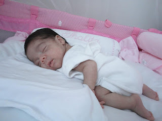 Thalita Vitória, esse é seu nome, nossa pequena nasceu dia 12/12/2011 com 29 semanas e 980g, tão pequenina e tão guerreira. Ficou na UTI 1 mês e no berçário mais 1 mês, teve pneumotórax, fez transfusão sanguínea e muita anemia. Mas O senhor Jesus estava ali todos os dias protegendo e guardando a nossa figurinha.