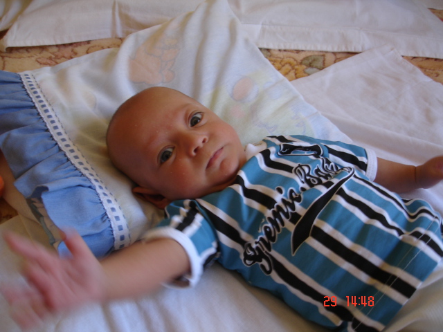 Hoje ele está com 3 meses e meio e quase 4 Kg e bem tranquilo, um bebê muito amado por todos.