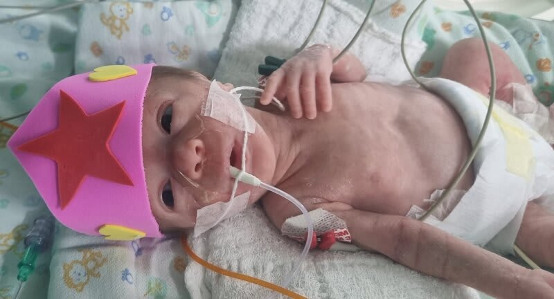 Minha filha se chama Lorena. Escolhi esse nome por achar que o significado é bem forte: famosa guerreira. Não imaginava que ela precisaria ser uma guerreira para lutar pela própria vida. Nasceu de 29 semanas e 6 dias, pesando 1kg. Pude segurá-la pela primeira vez após 04 dias de nascida. Lembro que só chorava de felicidade em poder pegar aquele pacotinho no colo, tão leve, mas tão forte! Precisou de 72 dias de internação e nesse período nossos corações foram testados. Apresentou quadro de sepse, infecções bacterianas, trombo extenso no coração após uso do Acesso Venoso Central, hemorragia cerebral que evoluiu até grau II e causou focos de Leucomalácia.