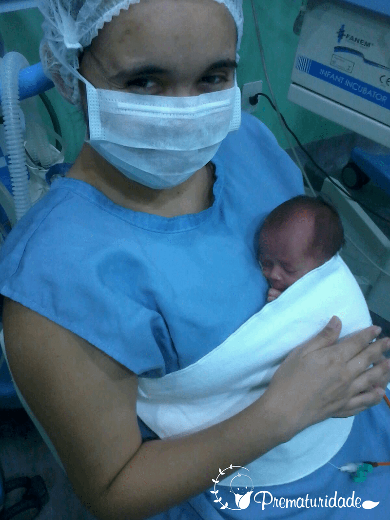 Uma gestação de muito amor, mas envolvida por um problema de hipertensão. Não imaginávamos que esse problema nos tornaria pais de um prematuro, isso: prematuro extremo de apenas 1,185 kg e 35 cm, o menor bebê que a gente já tinha visto. No momento que a vi pela primeira vez, pensei: esse é nosso bebê, nossa Sophia?! A médica falou "sim, mãe, é seu bebê" e uma mistura de felicidade e insegurança tomou conta de mim. A partir daí, a nossa realidade começava, naquele dia 06/08/14, no Hospital e Maternidade Clim, na cidade de João Pessoa (PB), com um parto prematuro de 34 semanas.