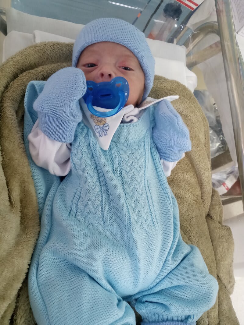 Em 31 de maio de 2023 minha bolsa rompeu com 28 semanas , foi aquela correria para chegar ao hospital , pois era um dia chuvoso com muito trânsito e tivemos que solicitar apoio da polícia para conseguir chegar ao hospital e parar o trabalho de parto. Fui atendida e internada, Anthony estava com 1.210 kg, conseguiram interromper as contratações, me mantiveram internada, exames realizados diariamente e o medo do parto prematuro.