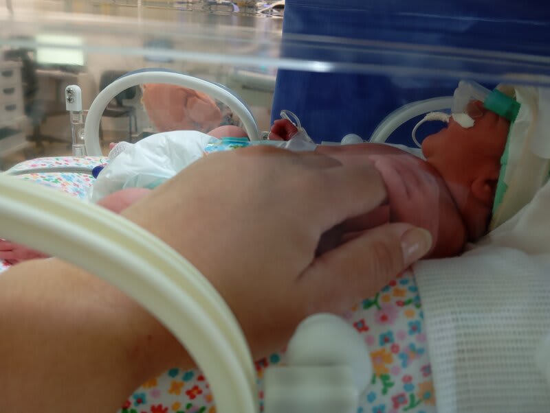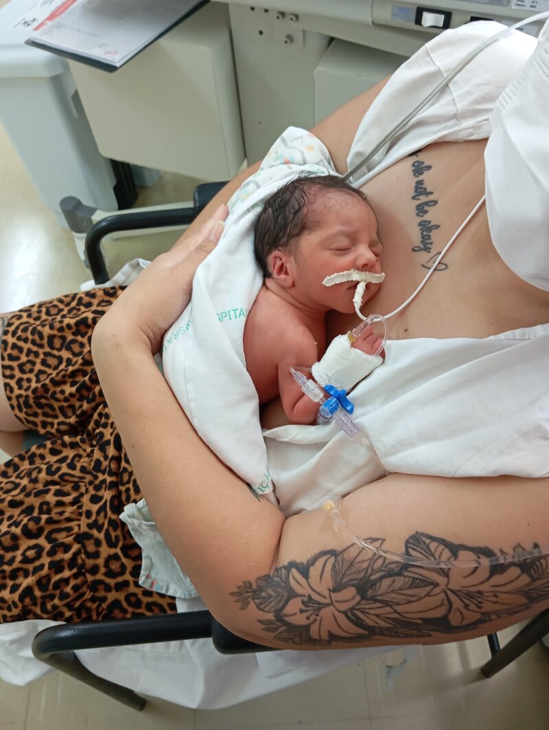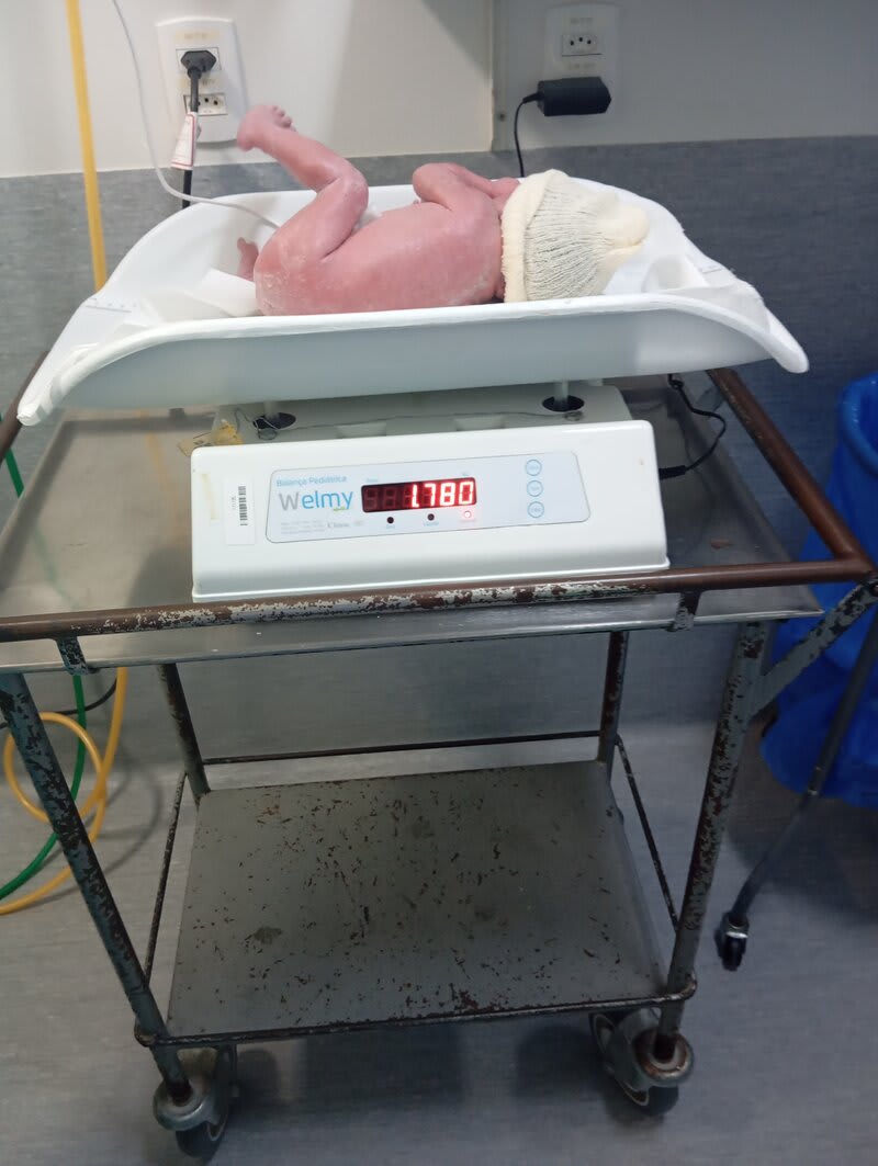 Então no dia 20/11 fomos fazer nossa ecografia de rotina, quando vimos que ela estava com percentil - 1 (abaixo de um) ela estava recebendo o mínimo pra sobreviver no útero e o líquido amniótico estava bem reduzido.. Então repetimos a tarde e depois a noite, a tarde tinha aumentado um pouco, mas a noite voltou a baixar.. Então ia acontecer, ela teria que nascer naquele dia mesmo! Foi um misto de sentimentos! Ansiedade, medo, preocupação, felicidade tudo junto. Então a doutora veio e me disse que pela manhã, no dia seguinte, íamos começar a indução do parto porque no momento era mais seguro interromper a gestação do que levar a diante, mas que faríamos pela manhã pois havia mais recursos do que a noite/madrugada. Então no dia seguinte, íamos induzir, mas por conta da falta de condições maternas para a indução do TP e o risco para a bebê, que já estava entrando em sofrimento fetal, optaram pela cesárea de emergência. Então no dia 21 de novembro, às 17h05 nasceu meu milagre e amor da minha vida, pesando 1.780kg e medindo 38 centímetros, um toquinho de gente. No momento em que ela nasceu, chorou forte e foi tão bom, foi onde fiquei em paz porque vi que ela nasceu bem, sem necessidade de reanimar ou entubar. Ela foi para a UTI neo para monitoramento e para alcançar o peso necessário para a alta. Nas primeiras 24h ela precisou ir para o CPAP (um mini capacetezinho, com a cânula de oxigênio) para ajudá-la a respirar pois estava tendo muitas apnéias. Junto disso, ela apresentou movimentos que indicaram convulsão, então foram feitos exames (eletroencefalograma, sangue e ecografia da cabeça) que constataram que de fato ela havia tido convulsões. Iniciamos o uso de anticonvulsivante e repetimos os exames duas vezes após convulsão, também precisou de uma tomografia para ter certeza de que tudo estava bem novamente.