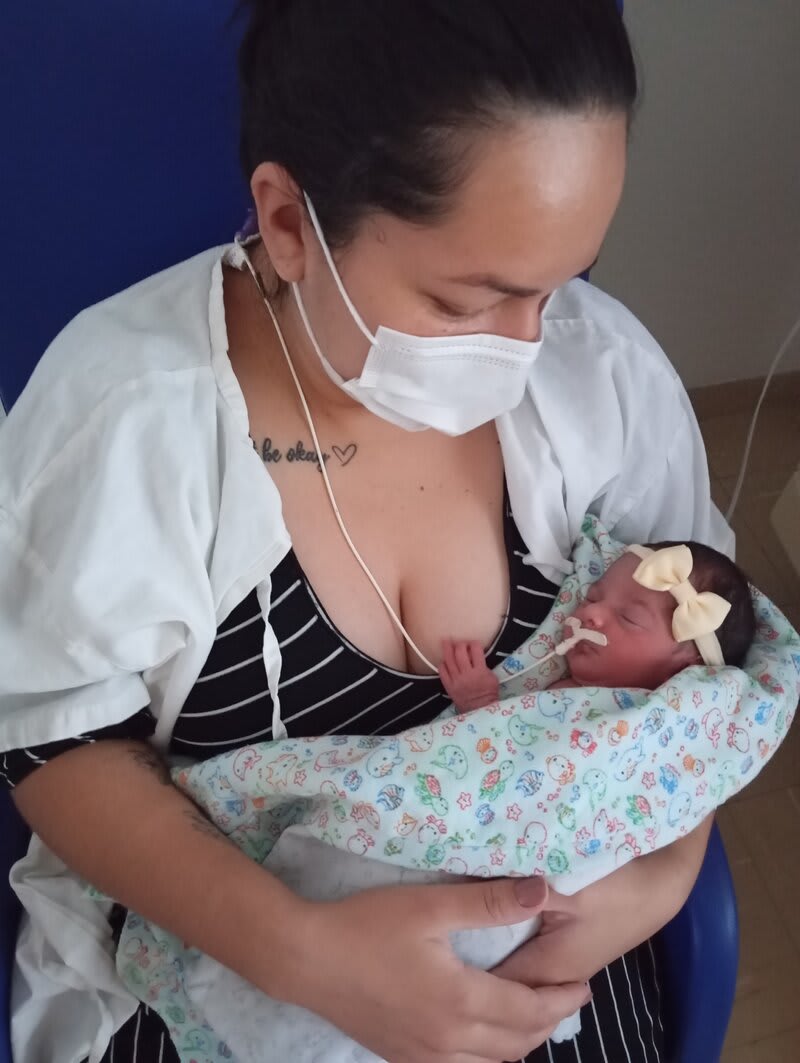 Olá! Esta menina linda se chama Aylla Vitória. Sim, fomos vitoriosas! Minha gestação foi muito tranquila até as 21 semanas e meia. Até o momento em que fizemos a ecografia morfológica do 2° trimestre, com 22 semanas, em que a obstetra achou a bebê muito pequena para a idade Como tínhamos consulta no hospital (pré Natal de alto risco por conta da hipertensão) na semana seguinte, ela nos liberou. Então quando estava com 23s +3d, repetimos a morfológica em que foi realmente constatado o diagnóstico da CIUR (Restrição de crescimento intra-uterino) estágio 1, crescimento fetal no percentil 2! E assim começou a nossa luta, internamos sem previsão de alta. Eram coletas de exames a cada 48h, ecografia a cada 72h, monitoramento e etc. Passaram-se umas 2 semanas de internação e descobrimos minha ICFER (Insuficiência Cardíaca com fração de ejeção reduzida, 44%). Por isso digo, ela foi e é meu milagre e ainda salvou minha vida com o meu diagnóstico precoce. As semanas foram passando, algumas semanas dava mais alterada a eco, outras não, era tudo muito instável, ela poderia nascer a qualquer momento, picos de pressão, Pré-eclâmpsia sobreposta, covid, a ciur dela… tudo isso contribuiu para o parto prematuro.