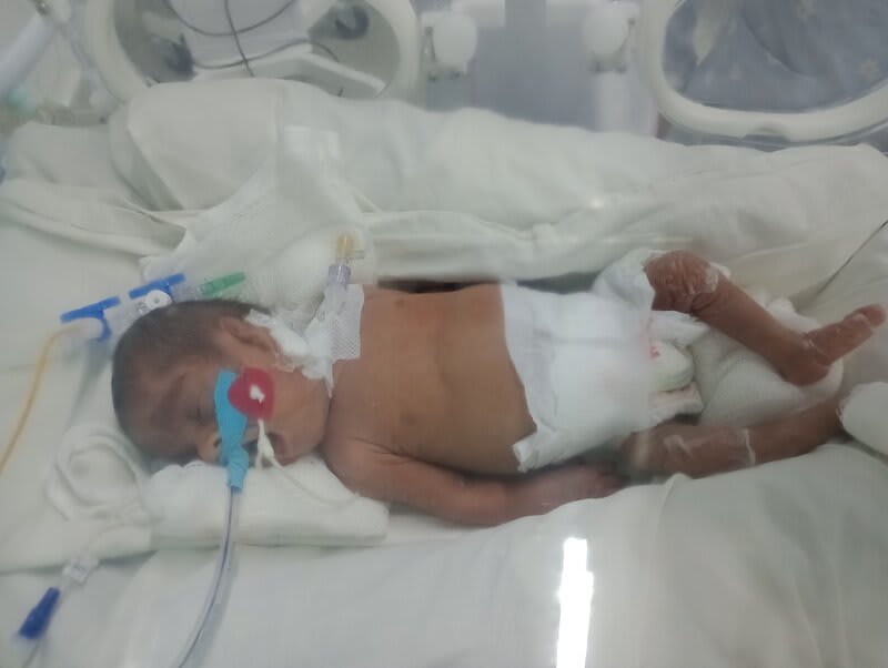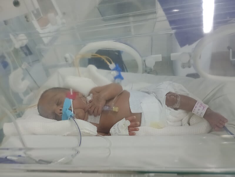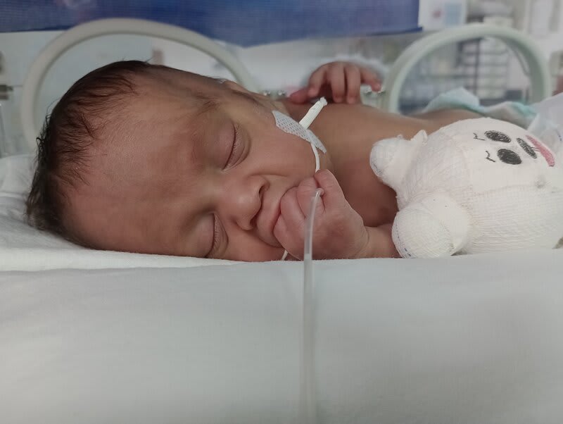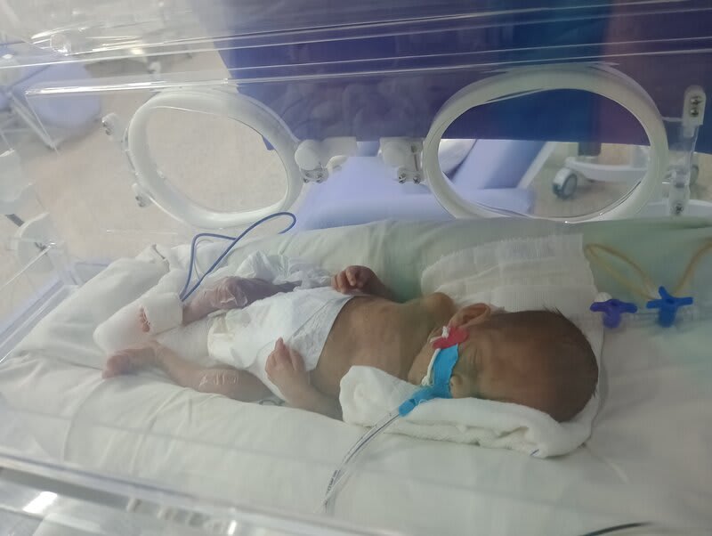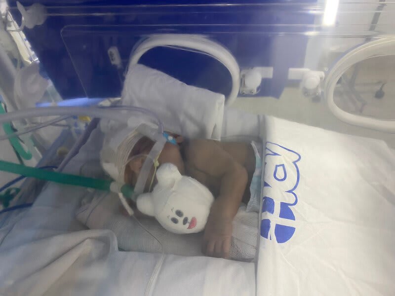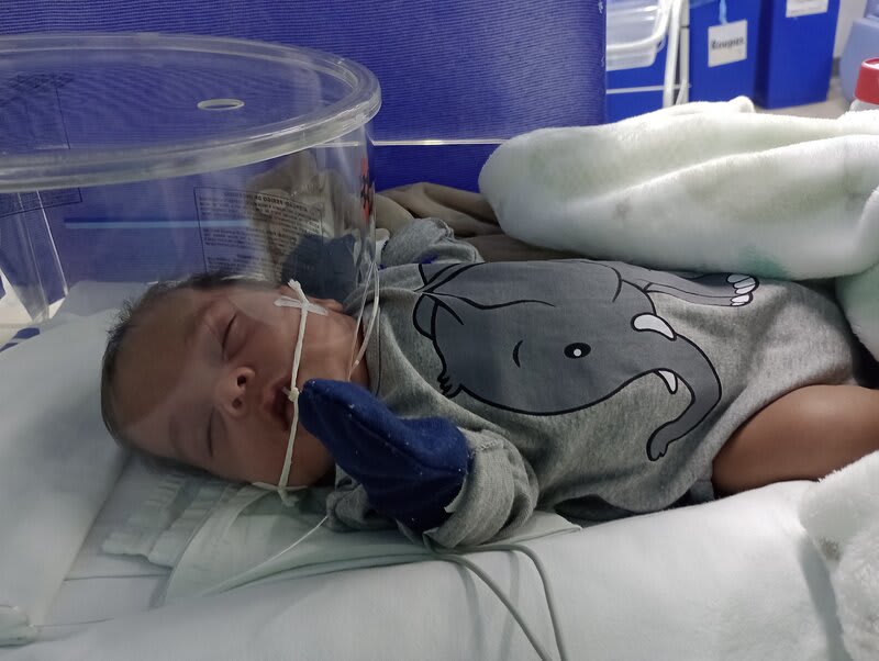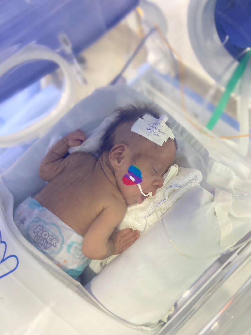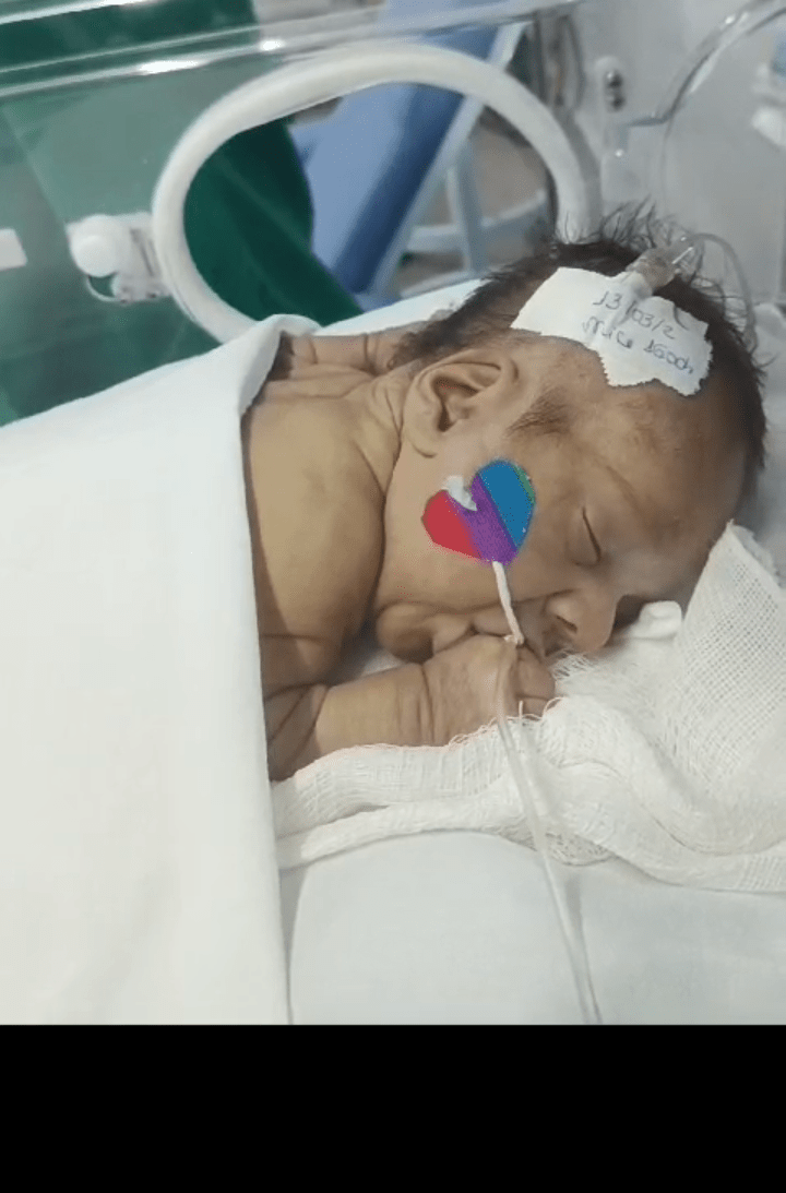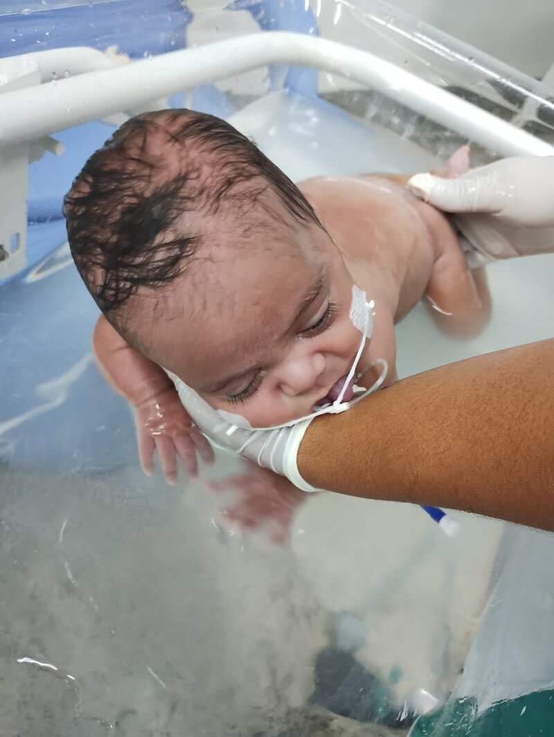 Com 20 semanas tive outro descolamento, meu coração estava em pedaços pois dessa vez o sangramento foi maior, mas fui para o hospital e lá vimos que João continuava lutando e continuava firme, desse dia até o dia 7 de dezembro fiquei imóvel contando os dias como se fosse uma eternidade e orando a Deus para que ele continuasse a obra que ele planejou. De madrugada tive uma hemorragia e tiveram que me transferir para a capital pois na minha cidade João teria nenhuma chance, aí começou a nossa luta pela vida. Cheguei no hospital com hemorragia e fui direto para a área vermelha do pré parto onde fiquei por três dias, ainda sangrando e perdendo líquido cada vez que eu fazia xixi. Me transferiram para outra sala onde fiquei até o dia 12, já estava sentindo muitas dores nos dias anteriores e rezando para que Deus segurasse João mais um pouquinho na barriga pois meu bebê teria pouquíssimas chances de vida se nascesse naquela semana. Também conversamos sobre a minha vida que também estava em perigo pois a hemorragia ainda estava forte. Mas no dia 12/12/2023 tive outra hemorragia e uma parada cardíaca em que tive que ir para a primeira sala de parto que tinha disponível naquela hora pois as nossas vidas estavam em perigo. Assim foi feito e às 14:56 do dia 12/12/2023 João Miguel nasceu e eu renasci, com 24 semanas e 6 dias, pesando 680 g e medindo 28,5 centímetros, foi direto para UTI neo onde ficou entubado por exatamente 3 meses e 10 dias, enfrentando 25 diagnósticos, baixo peso, hemorragia grau 1 na cabeça, inflamação no fígado, retinopatia da prematuridade, convulsão persistente, entre outras, foram exatamente 4 meses de UTI, depois foi transferido para UCIN onde começava a luta para desmamar do oxigênio.