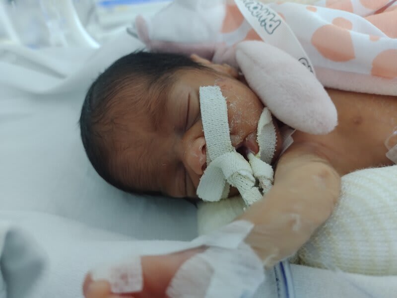 Thalia Marrie, 26 semanas 885 gramas, 5 meses e 20 dias de UTI neonatal, prematuro extremo com displasia broncopulmonar, ficou em ventilação mecânica por 88 dias, quando chegou próximo da alta tivemos o diagnóstico de retinopatia da prematuridade, fomos fazer a cirurgia de fotocoagulação e não conseguimos mais uma extubação com sucesso, então tivemos que recorrer a traqueostomia por estar muitos dias em ventilação mecânica novamente, a cirurgia foi um sucesso 1 mês tive a tão sonhada alta. Agora estou bem em casa e com acompanhamento severo para minha recuperação total.