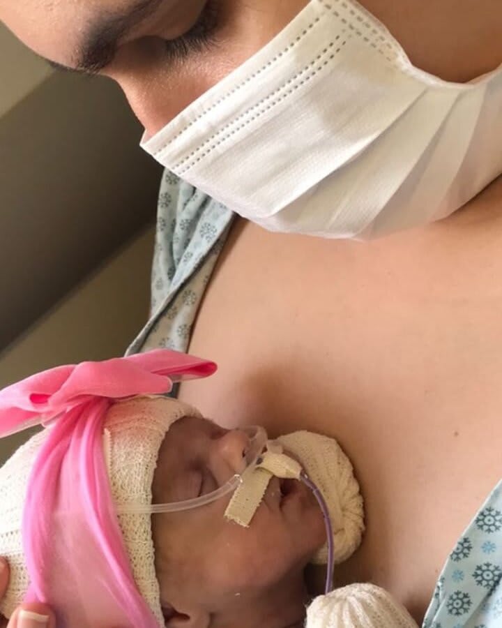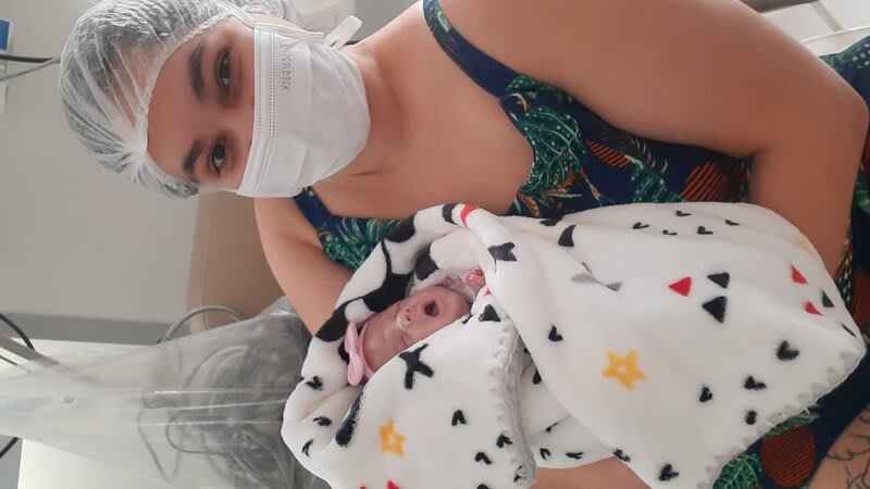 No dia 03/07/2023 dei entrada no PS, fui internada na UTI para sulfatar, não foi efetivo, tive pré-eclâmpsia e síndrome de Hellp grau 3. A cesárea foi realizada de urgência no dia 04/07/2023 às 9:47. Estela nasceu de 26 semanas, medindo 32 cm e pesando 730g. Ela foi entubada, teve que realizar um pneumotórax para drenar o líquido que se acumulou no pulmão, teve duas infecções hospitalares, ficou de jejum por vários dias, pulmão velado, cpap, sonda de alimentação e cateter nasal, pois ficou "viciada" no O2. Após 83 dias de uti neonatal conseguimos superar a prematuridade extrema. Agora ela segue com o acompanhamento da neonatologista, está crescendo, ganhando peso e se desenvolvendo. Deus é maravilhoso!