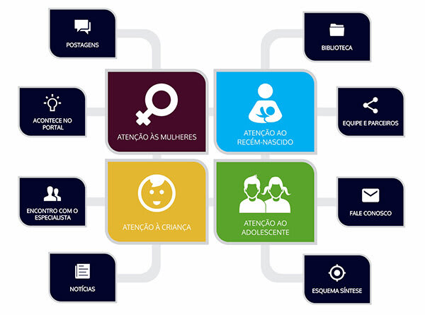 O portal tem uma página dedicada a Atenção ao Recém-Nascido. Nesta parte, o Esquema Síntese do Cuidado Neonatal apresenta a linha de cuidado integral para o recém-nascido de risco e sua família. Partindo das grandes áreas prioritárias para a atenção neonatal, o Esquema Síntese, além de orientar a organização do conteúdo, registra o compromisso do Portal com elementos que qualificam a atenção e possibilitam melhores resultados para os recém-nascidos em termos de sobrevida com qualidade de vida.
