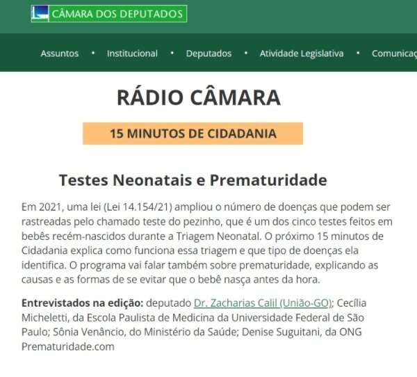Confira a entrevista completa em: https://www.camara.leg.br/radio/programas/1102610-testes-neonatais-e-prematuridade/