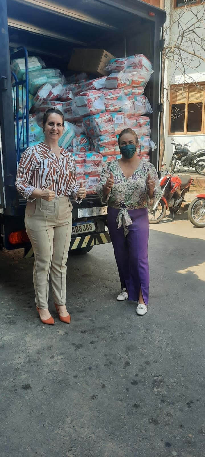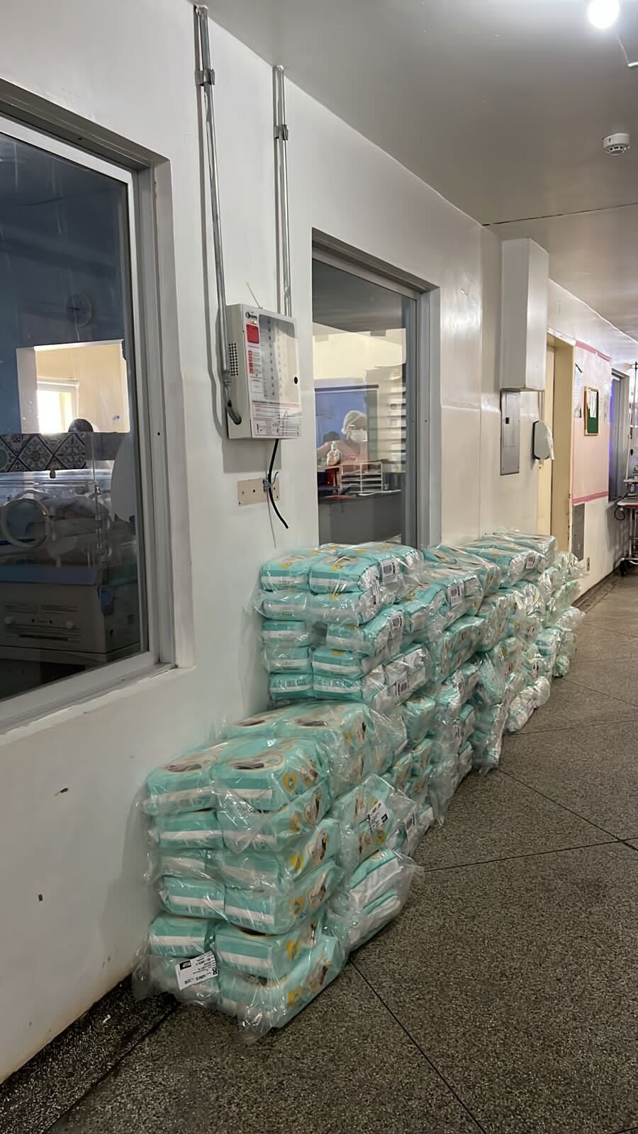 Nessa "leva" de doações, foram mais de 58 mil fraldas Pampers tamanhos RN e P, 80 poltronas reclináveis e 60 cadeiras.