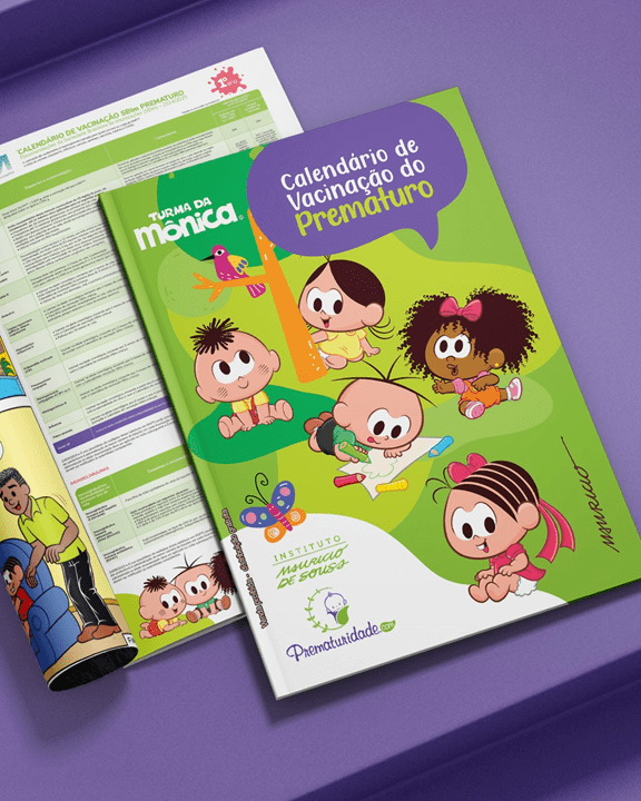 A Turma da Mônica: Em Cuidados com a Prematuridade traz passatempos e atividades educativas e um QR code que direciona ao calendário vacinal específico para prematuros, recomendado pela Sociedade Brasileira de Imunizações (SBIm). “O calendário será distribuído para famílias de prematuros de todo o Brasil pelas mãos dos nossos voluntários. É uma maneira divertida e didática de disseminar informações importantes sobre a saúde dos prematuros, especialmente entre famílias e profissionais que convivem com essa realidade”, diz a diretora da ONG Prematuridade.com, Denise Suguitani.