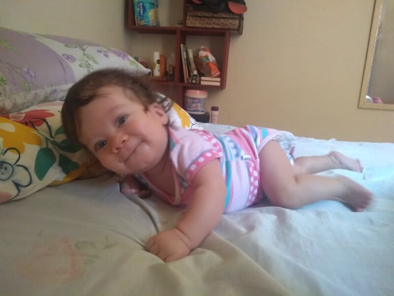Minha gestação transcorreu de modo muito conturbado desde o início. Sangramentos recorrentes e intensos até o quinto mês de gestação. Após essa questão, em meio a pandemia de COVID 19 e o pânico gerado, com 29 semanas de gestação ocorreu a ruptura da bolsa. Chegando a emergência do hospital, no qual já realizava acompanhamento de pré natal de alto risco (diabetes gestacional e hipertensão), pensaram ser de urgência a realização da cesárea. Mas observaram que Diana estava bem tranquila no útero. Assim, fiquei internada por 14 dias, sangrando e tomando bolsas e bolsas de soro, antibióticos e corticóides. Até que no dia 07 de maio de 2021 o cardiomiócito acusou uma queda brusca dos batimentos de Diana. Havia acabado de almoçar, fui encaminhada para a cesárea com o estômago e útero cheios. A cesárea foi um sucesso, ouvi o chorinho fraquinho de Diana e a correria das enfermeiras levando ela pra UTI NEO. Voltei para o quarto, anestesiada, em todos os sentidos. Sem minha bebê, sem sentir o cheiro ou tocar nela. Voltei só... E assim permaneci por 28 dias. Sendo 15 dias indo e voltando do hospital para visitas de 15 minutos, devido. COVID. Ia retirar o leite, deixava no banco de leite, e voltava pra casa. Coração gelado toda vez que sai do hospital e esquentava quando via Diana. Lutando. E sobrevivendo bem, sem nenhuma intercorrência. Apenas uma icterícia (amarelão) corrigida com o "banho azul". Com 9 vezes operou de hérnia inguinal e depois só saúde! Hoje, com 2 anos e 6 meses minha guerreira segue firme e forte, tagarelando suas primeiras palavras.