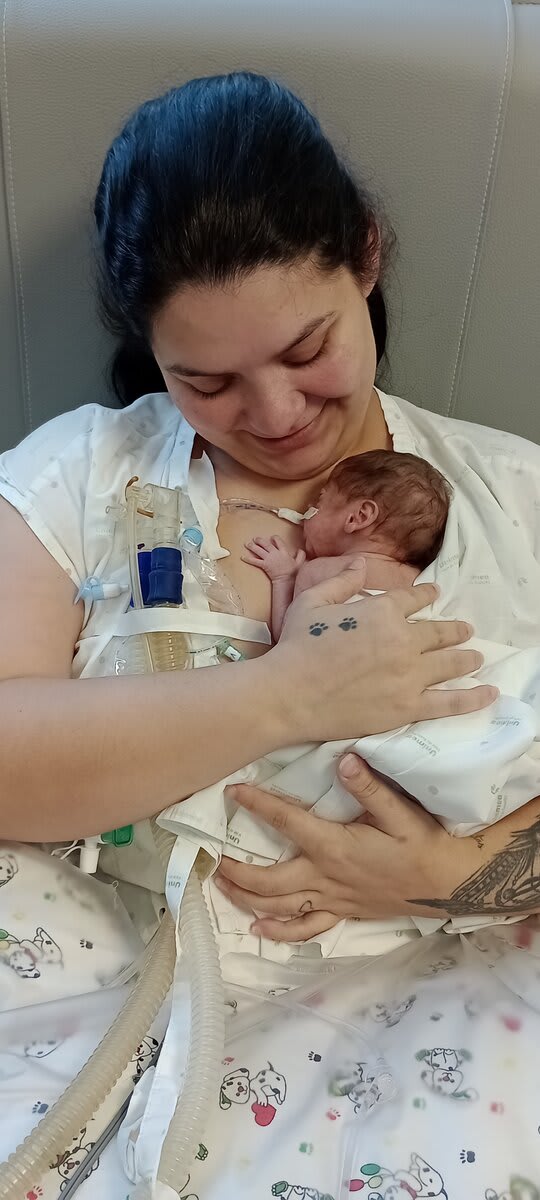 Sobre a história da minha filha que nasceu dia 06/11/24 após uma pré-eclâmpsia, nunca tive pressão alta e em todas as consultas pré-natal nunca ocorreu alterações, mas no dia 06 de novembro de 2024 senti fortes dores no estômago e náuseas, fui para o hospital para atendimento e no mesmo dia precisei ser internada para cesárea de emergência, nunca tinha imaginado que naquele dia iria nascer minha filha, mas para honra e glória de Deus ela nasceu bem, pesando 590 gramas, 30.6 centímetros, com 27 semanas. Foram dias de muitos desafios e procedimentos, realizou uma cirurgia de cateterismo com apenas 780 gramas, 1 mês e meio de oxigênio, 4 dias cipap e óculos nasal. Conheci minha filha após 6 dias que fiquei na UTI e peguei ela no colo pela primeira vez após 1 mês de vida. Foram 91 dias na UTI e hoje ela está com 4 meses.