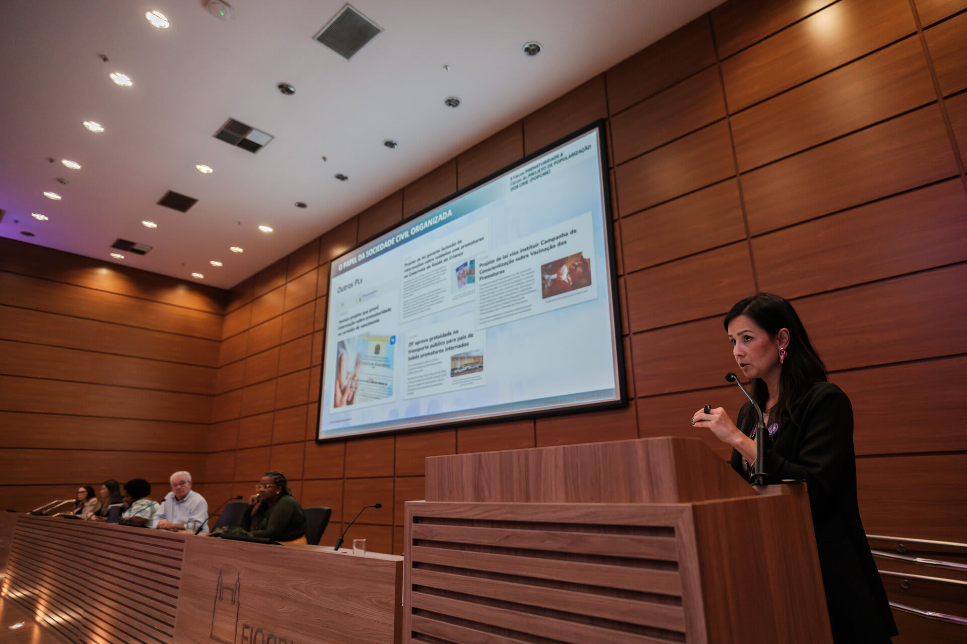 A Denise Suguitani, diretora da ONG Prematuridade.com, participou do evento trazendo a perspectiva da sociedade civil organizada, destacando o papel das famílias, das organizações sociais e do advocacy na promoção da equidade na imunização dos prematuros. Em sua fala, apresentou as principais ações que a ONG vem desenvolvendo atualmente, incluindo iniciativas de informação, mobilização social, qualificação de profissionais e diálogo com gestores e formuladores de políticas públicas.