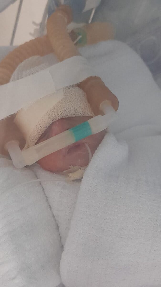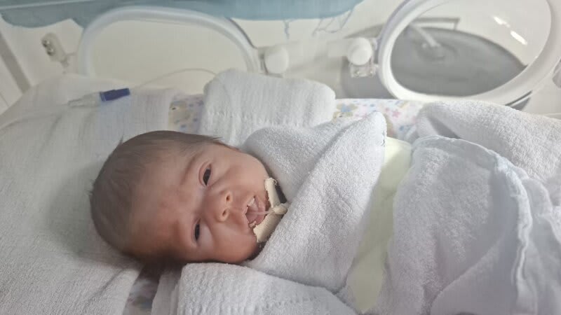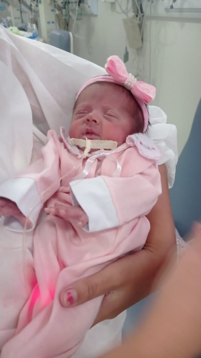 Duas semanas depois, a infecção reincidiu e migrou, causando corioamnionite, sepse e pré-eclâmpsia. Foi necessário fazer a remoção da cerclagem e uma cesárea de urgência! E então Iris Maria nasceu de 26 semanas exatas, no dia 27/05/25, pesando 870 gramas, chegando a 670 gramas após 3 dias de nascida.