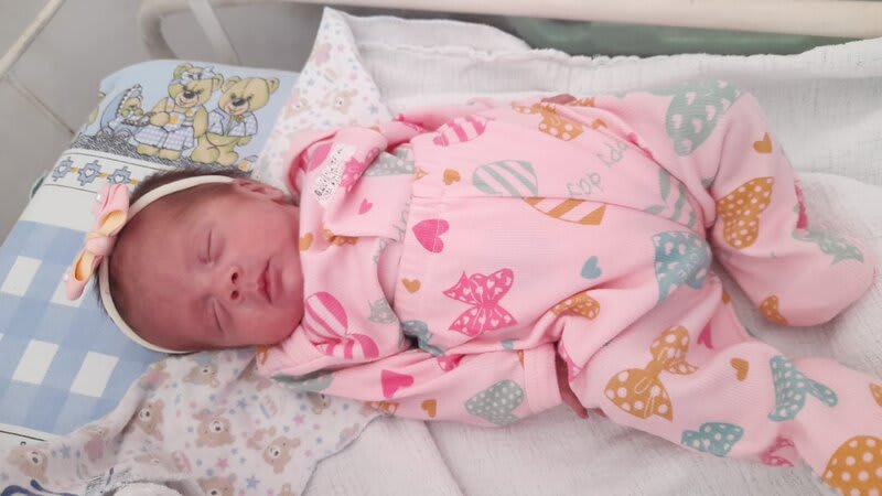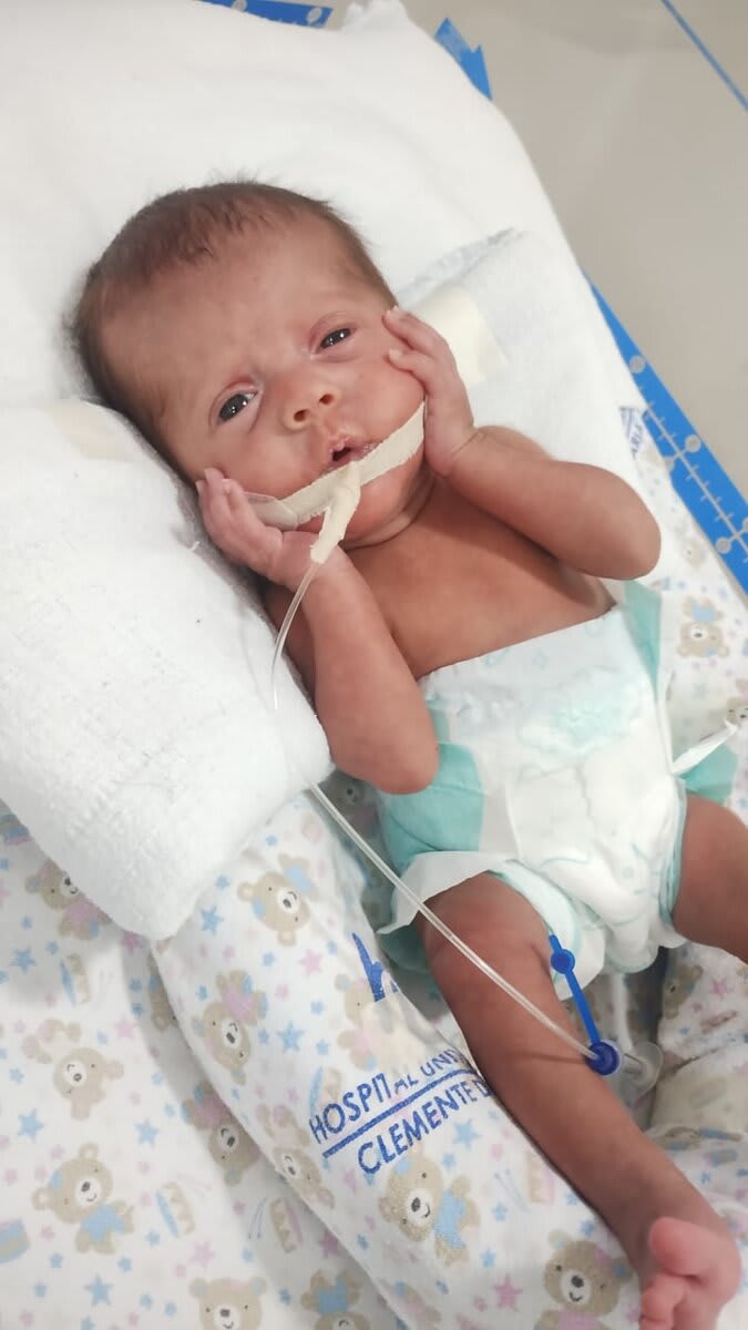Foi para a UTI neonatal, com diagnóstico de hemorragia cerebral grau 2, anemia severa, a qual recebeu 5 transfusões sanguíneas, rins e pulmão quase sem funcionamento, sepse neonatal, hipotermia e hiperglicemia, doença metabólica dos ossos, refluxo, icterícia, micro-hemorragia e microaneurisma ocular.