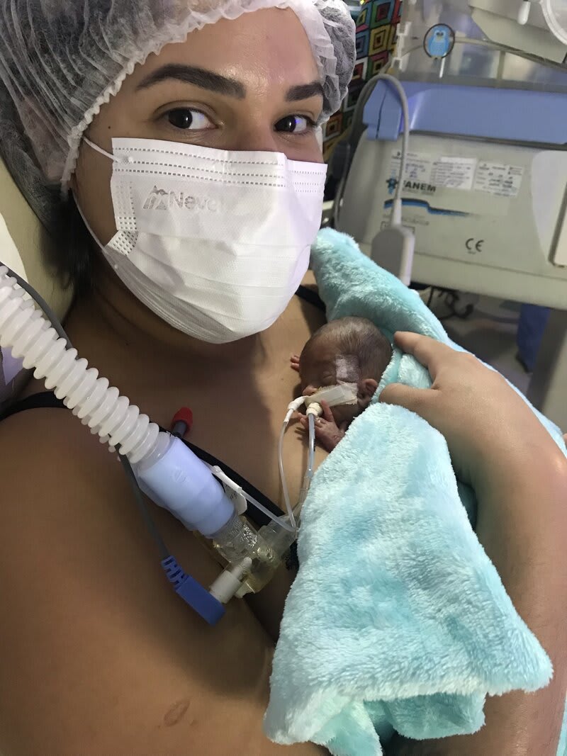 Meu nome é Anna Flávia sou de Belo Horizonte- MG e sou mãe de um milagre chamado Théo! Théo nasceu no dia 10/11/2021. No hospital Octaviano Neves. Théo nasceu prematuro extremo com 23 semanas + 5 dias, pesando 540 gramas. (Por pura pressa) rsrsrs Foram 107 dias de UTI NEO. (Neocenter) Théo é considerado um aborto, um milagre caso sobrevivesse. E sobreviveu! Com 20 dias de vida e ainda internado teve uma parada cardíaca por tamponamento cardíaco, foi reanimado e viveu intensamente os dias de internação vencendo um dia de cada vez e desafiando até mesmo os médicos que não acreditavam na sua força. Foram dias difíceis, de muitos choros e aflições. Mas também foram dias especiais e felizes a cada evolução, ganho de peso e força de viver. Hoje o Théo tem 2 aninhos e 12 dias! É um bebê saudável, sem nenhuma sequela ou atraso. Extremamente sorridente, meigo, amoroso, feliz e esperto! Théo é luz, trouxe paz e esperança para nossas vidas. Estamos muito orgulhosos do meu vencedor, meu milagre!
