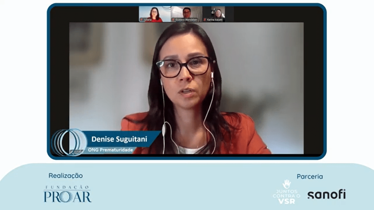 Representando a ONG Prematuridade.com, Denise Suguitani, diretora executiva, apresentou a perspectiva das famílias de bebês prematuros, ressaltando o impacto do VSR sobre essa população mais vulnerável e os avanços recentes em políticas públicas — como a incorporação da vacina para gestantes e do anticorpo monoclonal Nirsevimabe ao Sistema Único de Saúde (SUS). Denise também abordou os desafios atuais para garantir o acesso efetivo a essas tecnologias, de modo que cheguem a todos os bebês que delas necessitam.