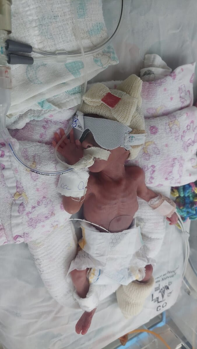 Eu sou a Lara, a promessa de Deus na vida dos meus papais. Nasci no dia 03/01/2023 com 24 semanas, vim ao mundo com 552 gramas, um potinho de manteiga como diz a mamãe hahaha. Eu cabia na palma da mão dos meus papais, tinha 29 centímetros. No meu nascimento os meus titios médicos me deram 1% de chance de vida, mas eles falaram que iriam lutar por mim e o papai do céu abençoou e eles conseguiram, tudo segundo a instrução do meu papai do céu. Eu quase nem tinha pele, ela era bem gelatinosa e quase transparente. Eu passei por alguns momentos difíceis, meu pezinho esquerdo faltou circulação logo na minha primeira semana de vida, ficou todo pretinho e devido à gravidade os médicos falaram que eu tinha uma enorme chance de perder todos os meus dedinhos, mas Deus é bom e meu pezinho e principalmente os meus dedinhos voltaram ao normal. Com 52 dias de vida pesando 830 gramas tive uma Sepse, tipo de infecção generalizada, fiquei muito inchada e todos os meus órgão inclusive meu coraçãozinho pararam, nessas duas vezes fui reanimada e o senhor Jesus me fez voltar para poder contar a vocês um pouquinho do que passei; por algum tempo fiquei tomando muitas drogas. Minha mamãe e meu papai não desistiram de mim, na verdade eles sabiam que eu iria vencer, pois Jesus já tinha falado com eles que era um processo que teríamos que passar, o processo foi doloroso para nós três. No entanto conseguimos e vencemos, fiquei conhecida em todo o hospital onde estava por ser o menor bebezinho daquele lugar e por ter suportado tudo que suportei. Titios, sabe o que o papai do céu falou pra minha mãe? Que promessa d’Ele não tem prazo de validade, só tem data de fabricação… Fiquei entubada três meses (90 dias) no dia da minha extubação todos comemoraram muito pois foi um sucesso, sem intercorrência… fiquei respirando com ajuda do Cpap por uma semana e depois já conseguir ficar em ar ambiente! Uma outra grande vitória foi o dia em que conseguir mamar sozinha, olha que só era uma tentativa que deveria durar 5 minutos e surpreendi a todos e mamei por 40 sem nem ao menos cansar, a minha mamãe ficou muito feliz pois ela sempre sonhou em amamentar. Com 119 dias internada, um dia antes de completar meus 4 meses, tive alta e foi um momento muito inexplicável e de muita emoção pois o grande dia havia chegado! Meu nominho seria somente Lara, porém meus papais precisavam deixar registrado a vitória que tivemos juntos e meu nome passou a ser LARA VITÓRIA!
