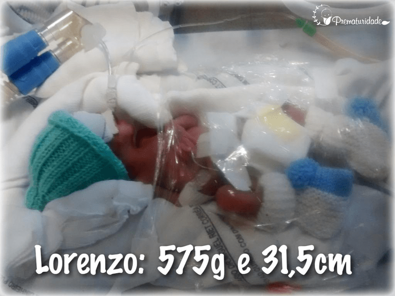 Já internada, os dias que se seguiram eram de ansiedade tamanha. Cada momento que o bebê se mantinha vivo, era uma vitória a ser celebrada. Foi então que, numa manhã nublada de quarta-feira, o ultrassom revelou que Lorenzo havia perdido peso na barriga e o fluxo sanguíneo estava centralizado. Ele estava em sofrimento. Fui encaminhada imediatamente para uma cesárea de emergência e, com 27 semanas, pesando apenas 575 gramas, nasceu nosso amado filho Lorenzo, às 12h10 do dia 19 de agosto de 2015. Para nós, pais de primeira viagem, a situação que a prematuridade extrema nos apresentava naquele momento era uma enorme quebra de expectativa frente a tudo que sonhávamos viver com nosso bebê. Uma intensa angústia.