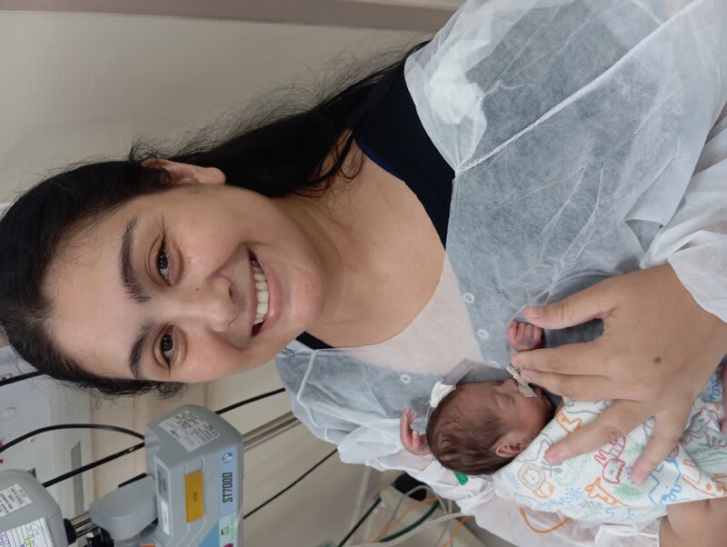 Nasceu com uma hemorragia de grau 1 no cérebro, que se dissolveu. Precisou de 8 transfusões de hemácias, 13 de plaquetas e 3 de plasma.